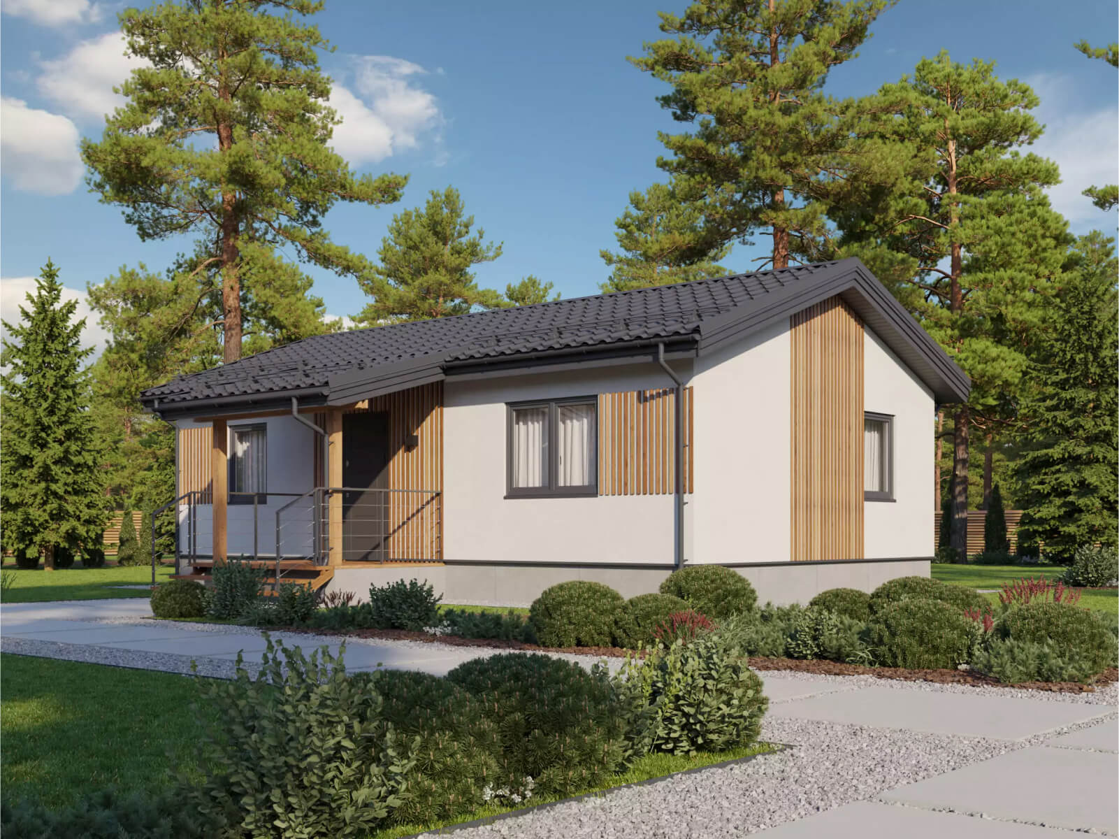 Несущий каркас с наружной обшивкой листами ОСБ, ЦСП или Гринборд и наружной отделкой системой СФТК, как и в комплектации №1, плюс утепление каркаса с защитой изнутри пароизоляцией и фиксацией рейкой, для удобства разводки коммуникаций в конструкции стены под листовым материалом. Преимущества данной комплектации: - Все вышеперечисоленные в комплектации 1 и 2, а также каркасы наружных стены уже утеплены и изолированы от внешних факторов, монтажной рейкой, которая фиксирует пароизоляционную пленку, позволяет выполнить скрытый монтаж инженерных коммуникаций под листовым отделочным материалом, не прибегая к штроблению, и исключает возможность ошибки не верного расположения розеток и выключателей, а также сокращает сроки проектирования.