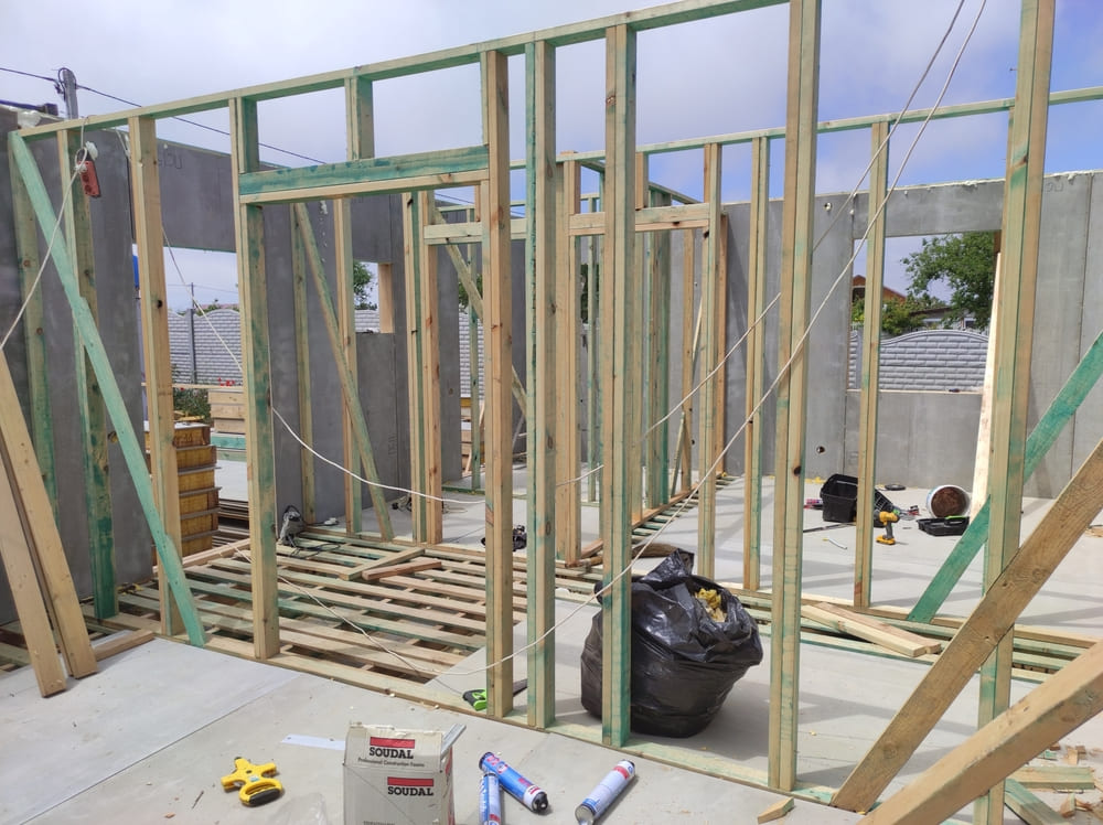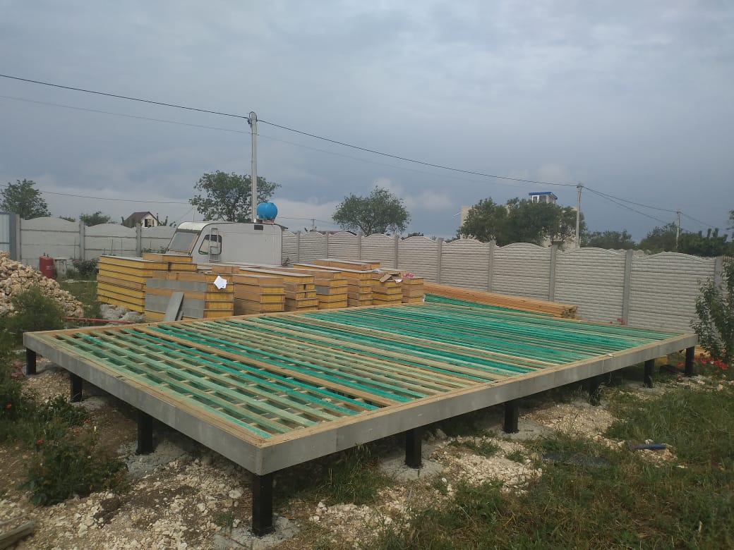 Ростверк изготовлен из калиброванного клееного бруса и защищен снаружи цементно-стружечной плитой