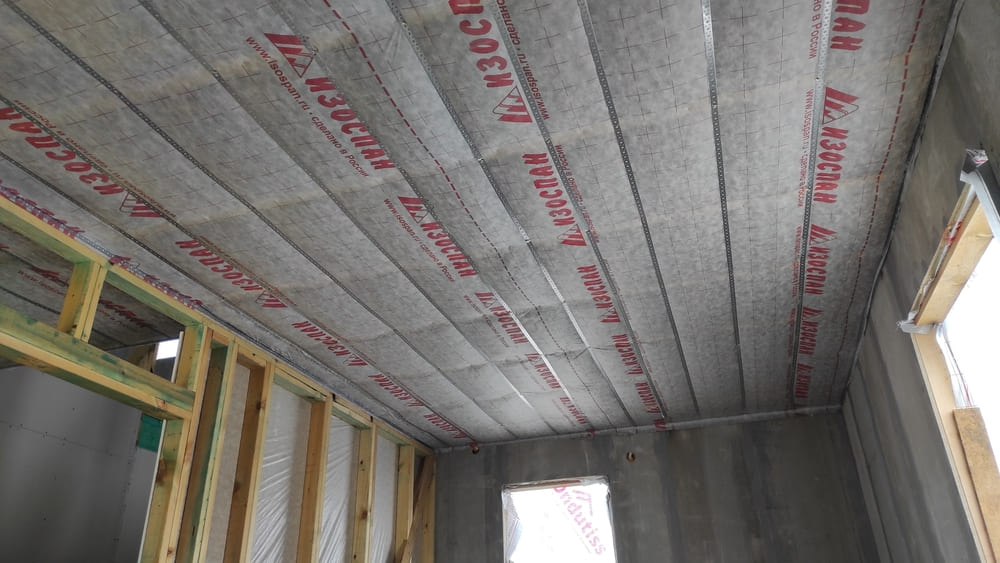 Потолок состоит из двутавровых балок 250 мм, а шаг монтажа балок - 600 мм.