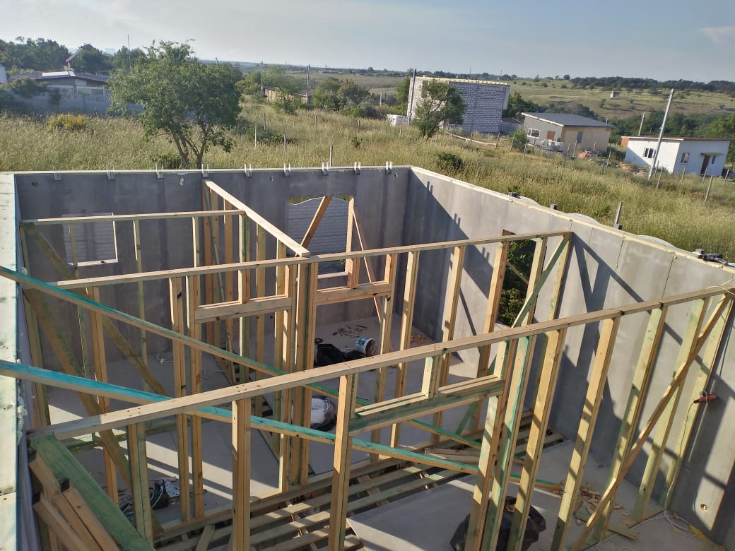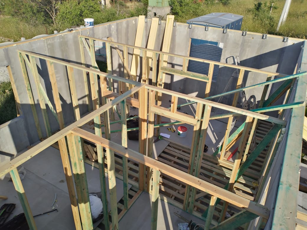Кровля может быть построена из бруса 150х50мм или SIP панелей. В качестве кровельного материала можно использовать: металлочерепицу, битумную и керамическую черепицу. Также производим кровельные шовные сэндвич-панели.