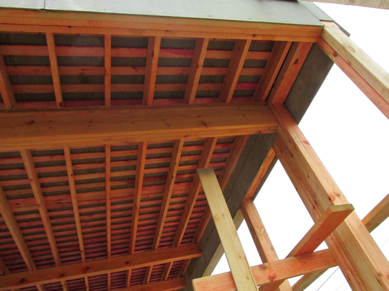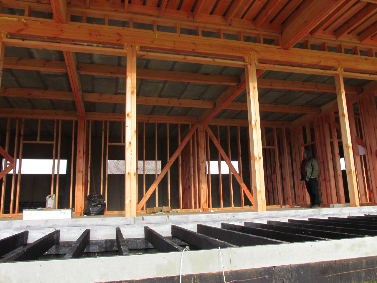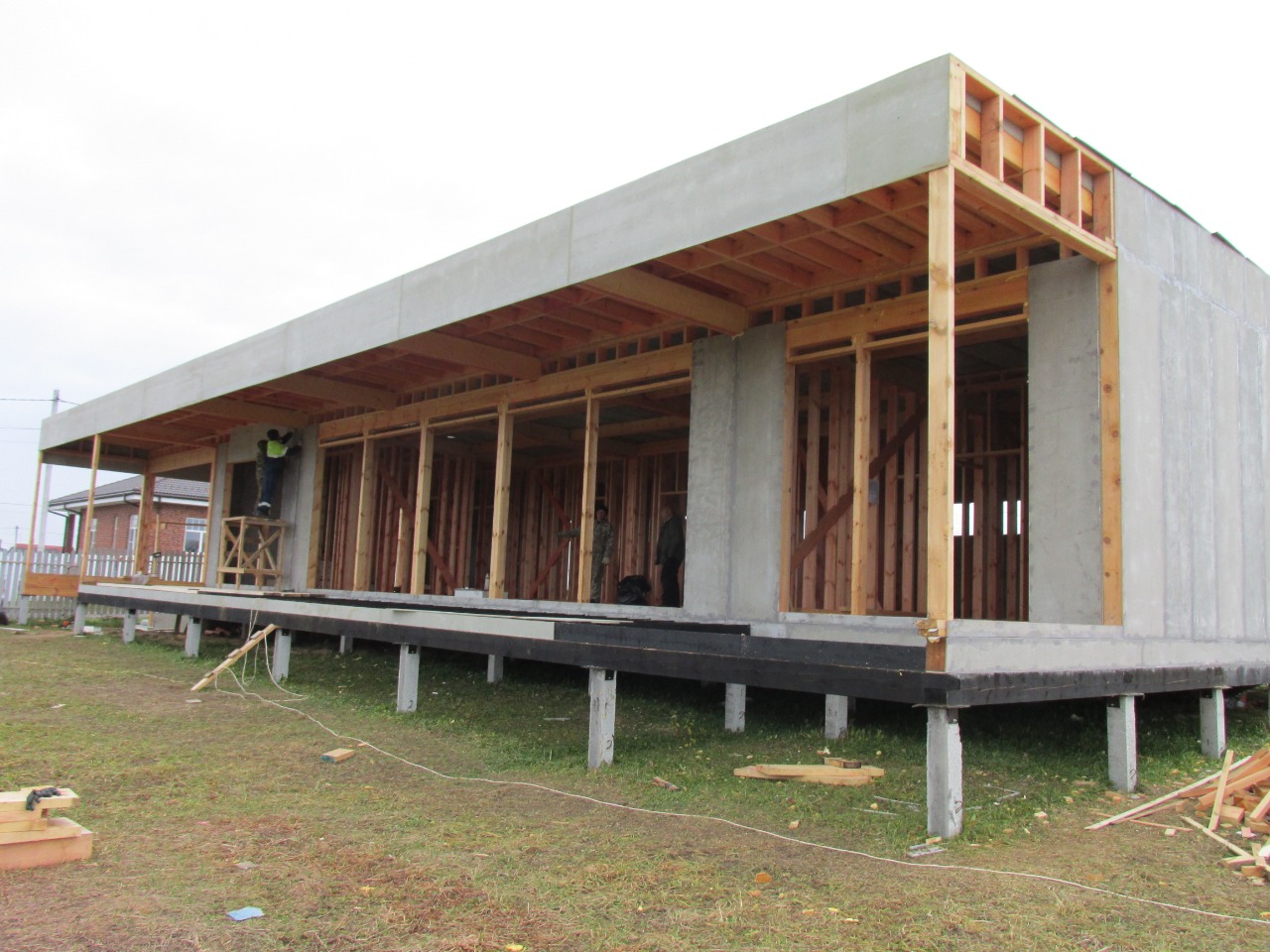 Ростверк изготовлен из калиброванного клееного бруса и защищен снаружи цементно-стружечной плитой