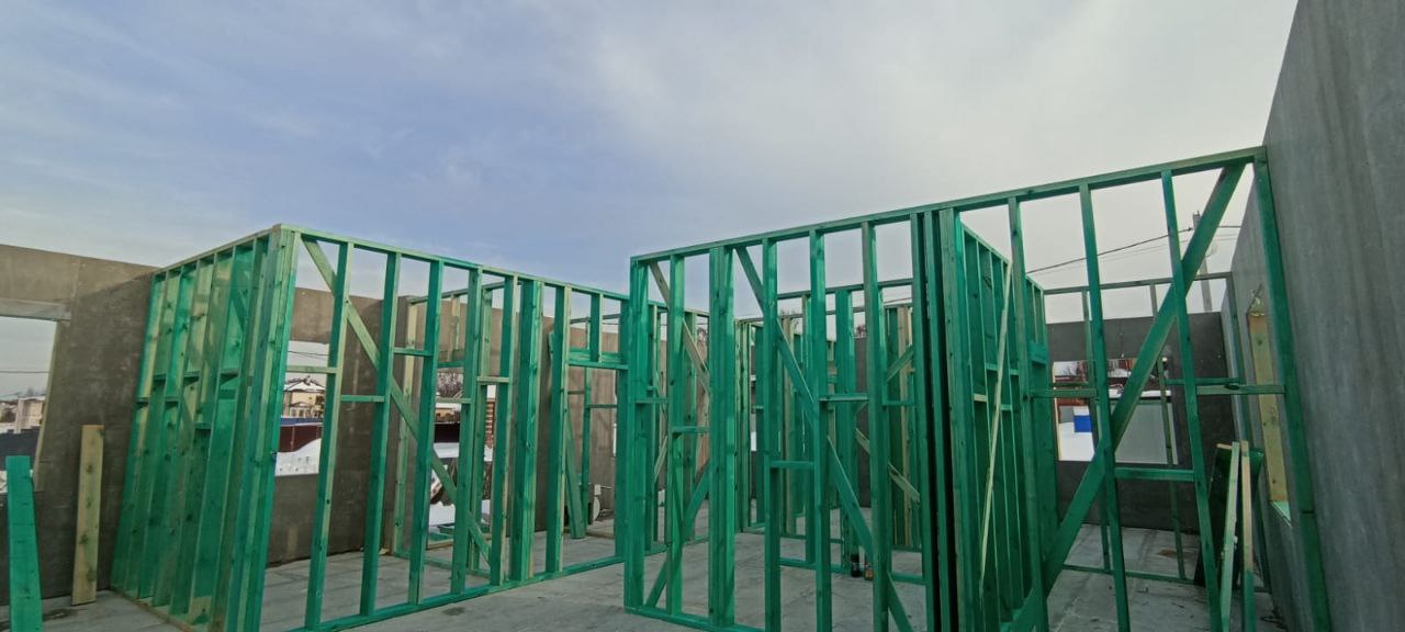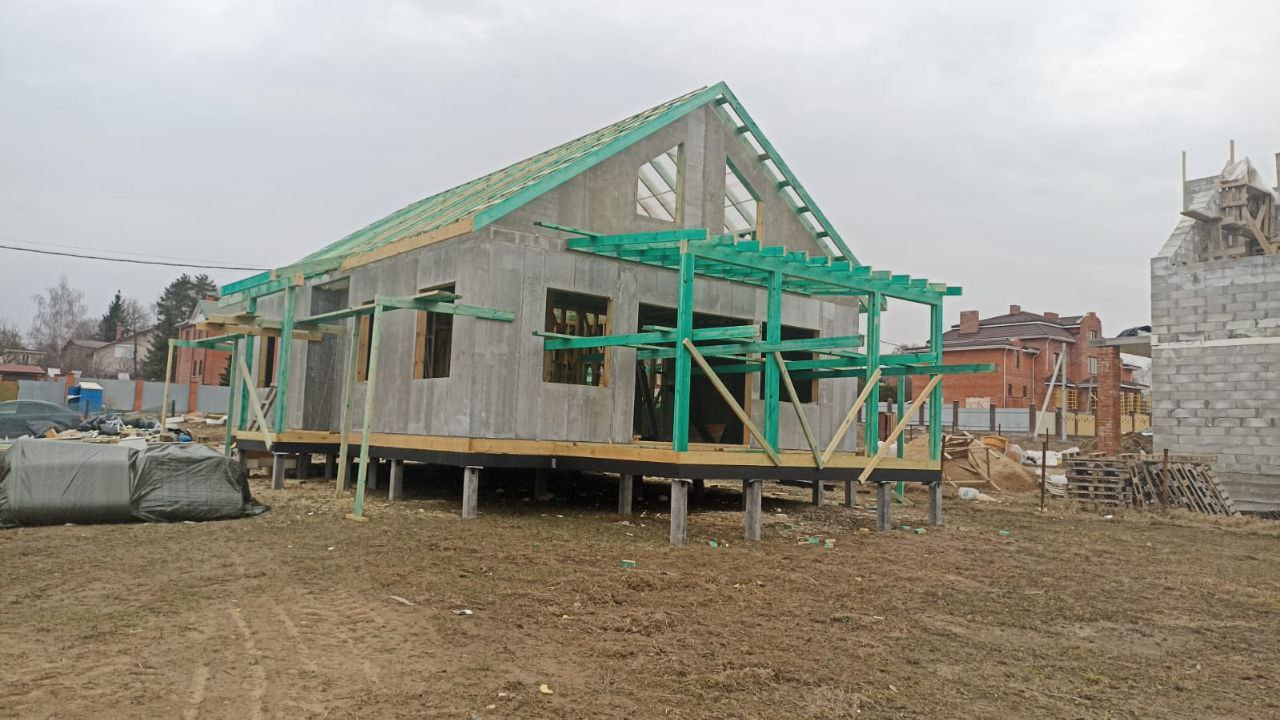 Ростверк изготовлен из калиброванного клееного бруса и защищен снаружи цементно-стружечной плитой
