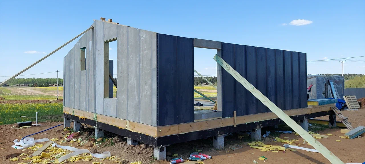 Ростверк изготовлен из калиброванного клееного бруса и защищен снаружи цементно-стружечной плитой