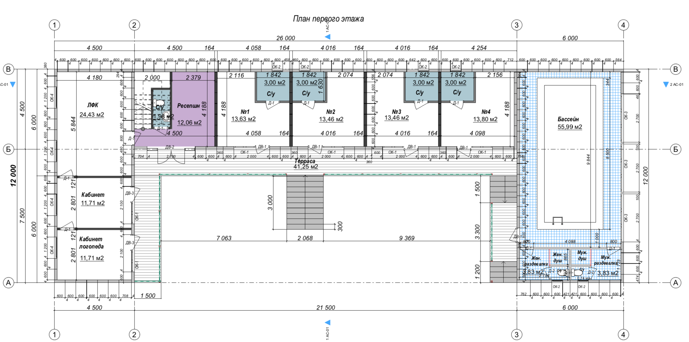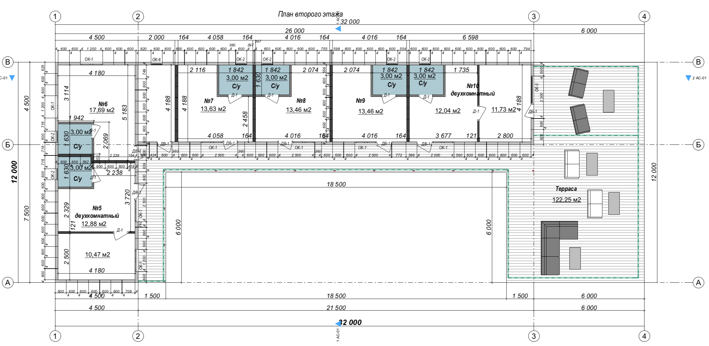 Общая площадь гостиницы с помещением бассейна: 373,5 м²