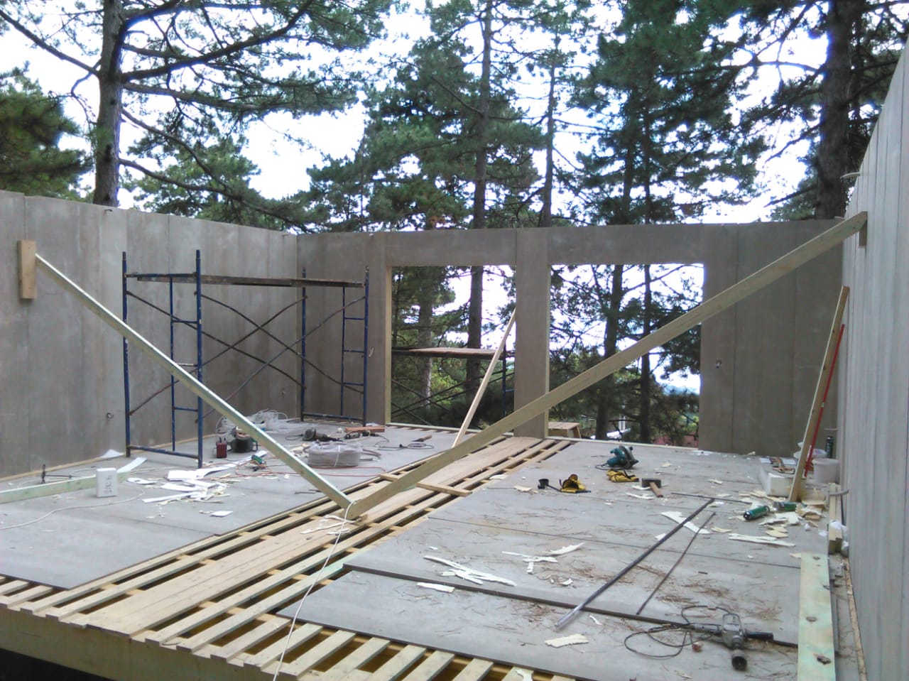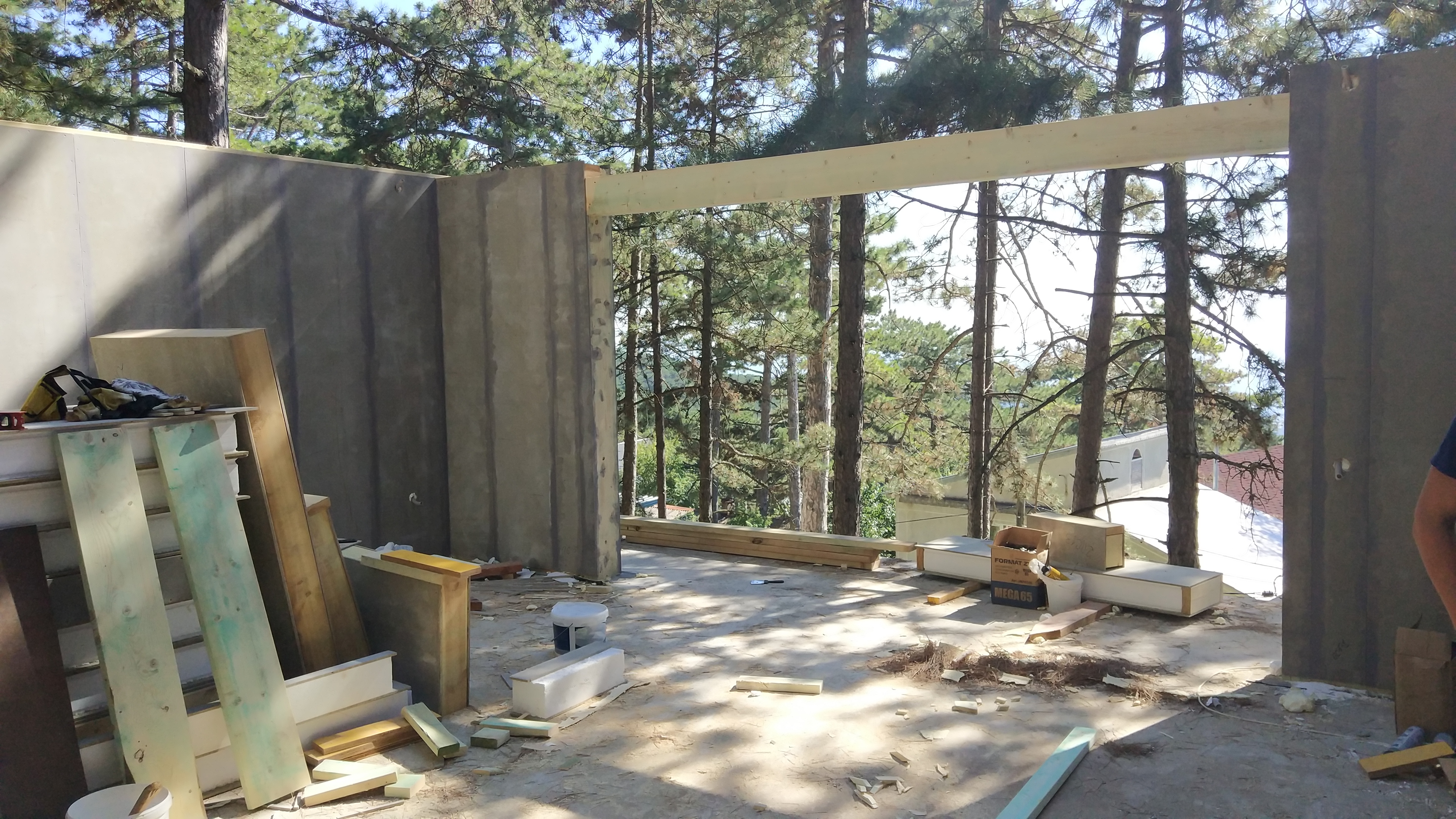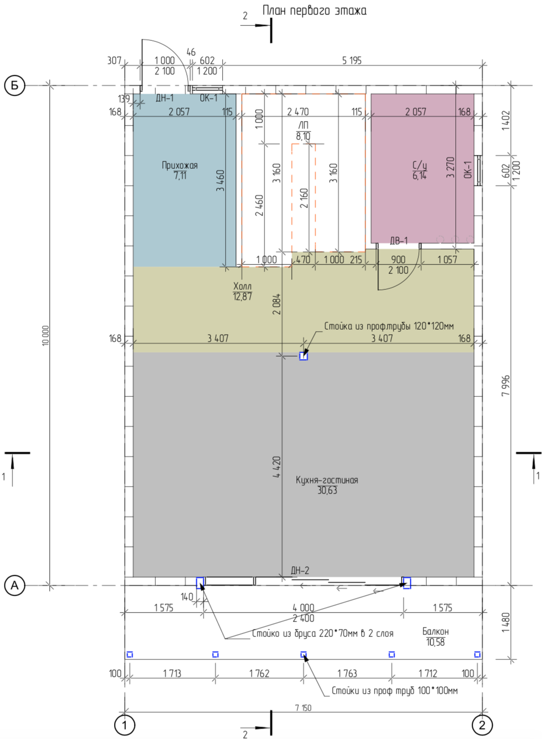 Ростверк изготовлен из калиброванного клееного бруса и защищен снаружи цементно-стружечной плитой