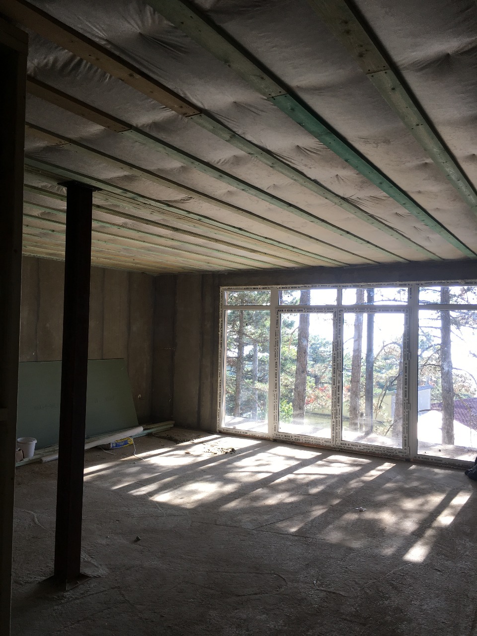 В качестве утеплителя помимо полистирола мы применяем каменную мин. плиту ISOVER. Класс горючести такого утеплителя НГ- негорюч. Данный утеплитель имеет потрясающие акустические (шумоизоляционные) характеристики!
