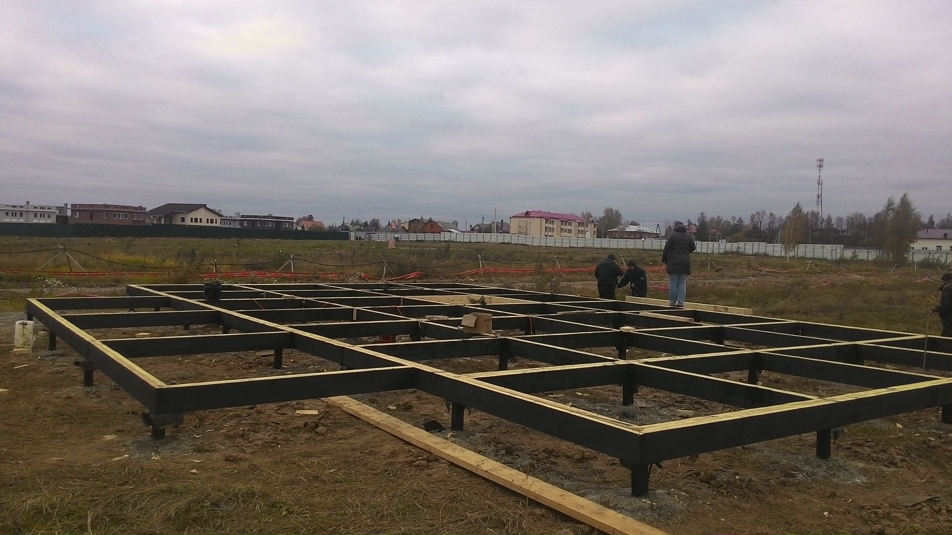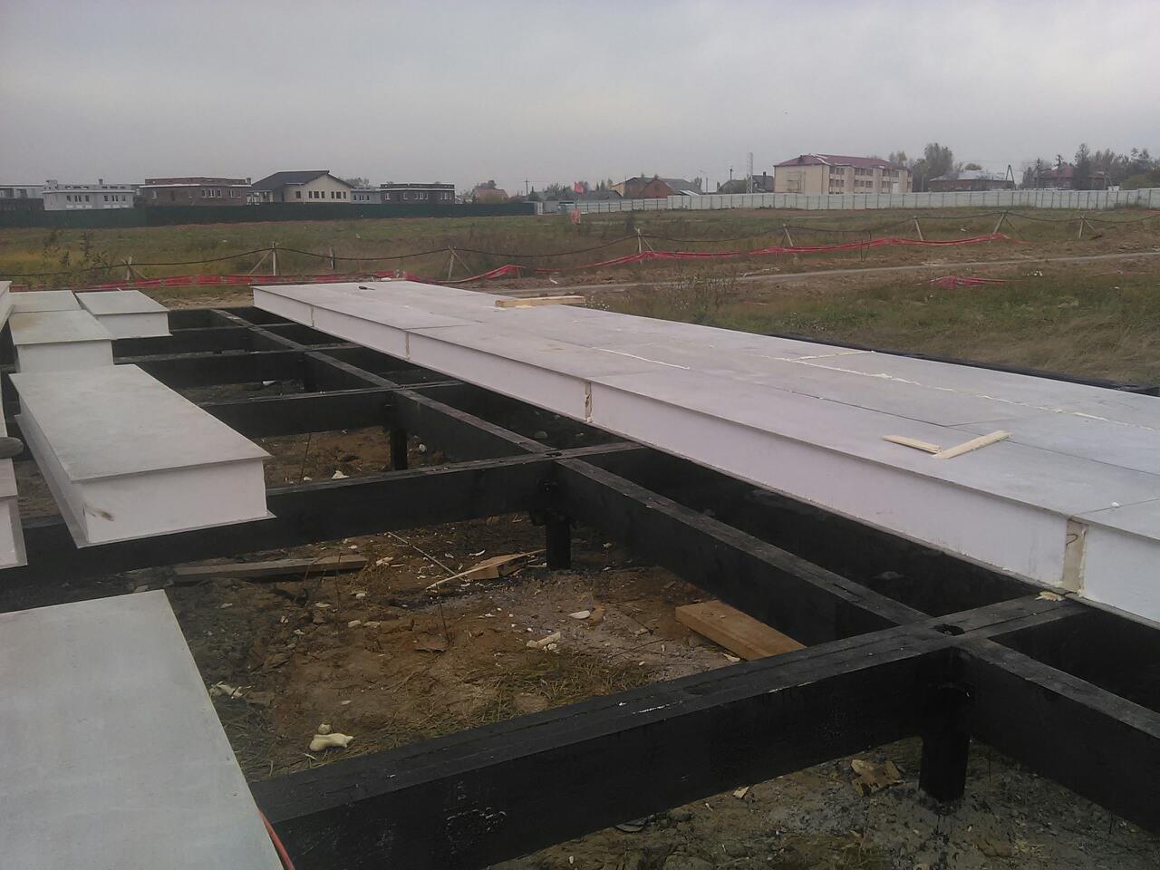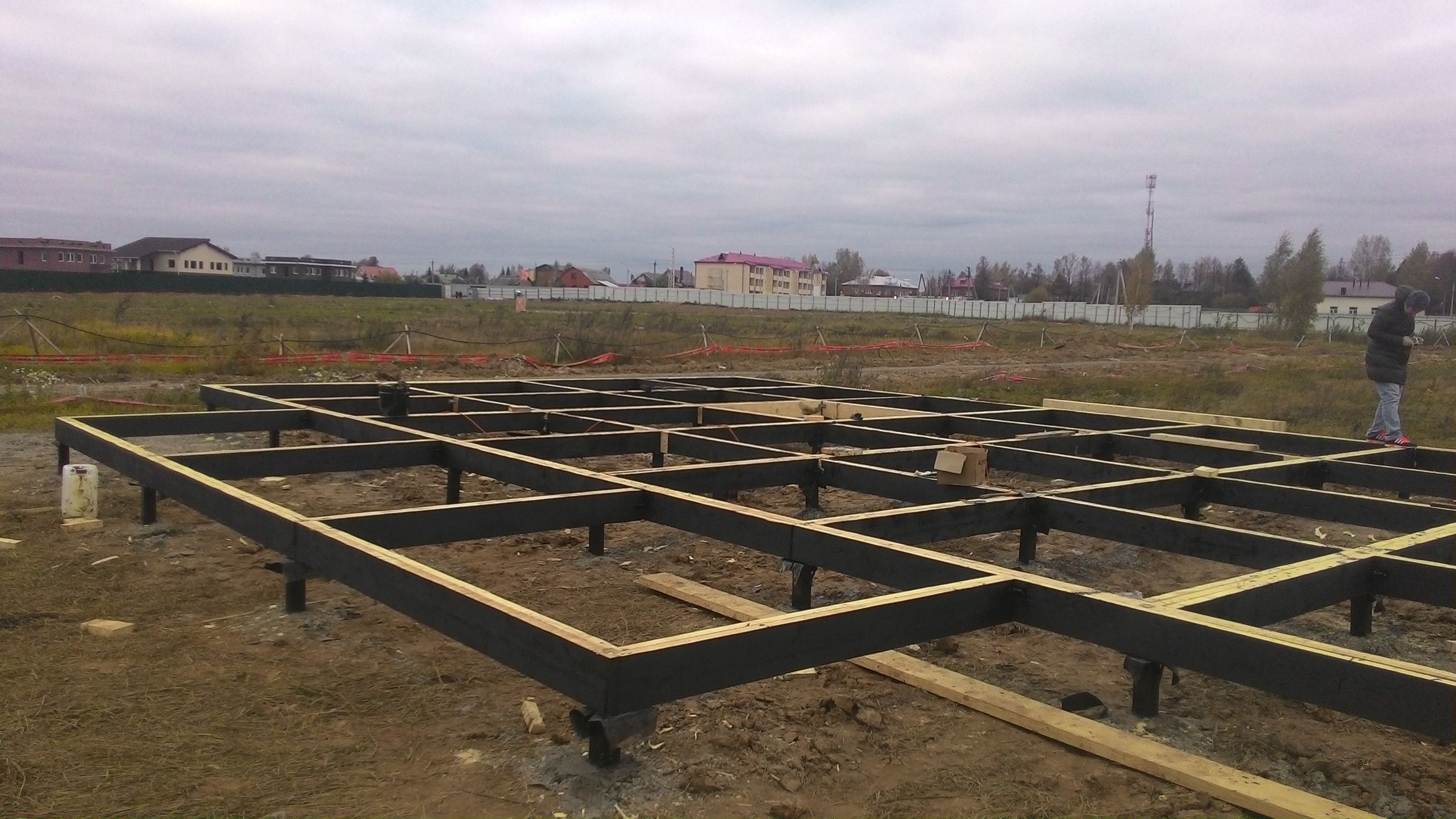 Ростверк изготовлен из калиброванного клееного бруса и защищен снаружи цементно-стружечной плитой