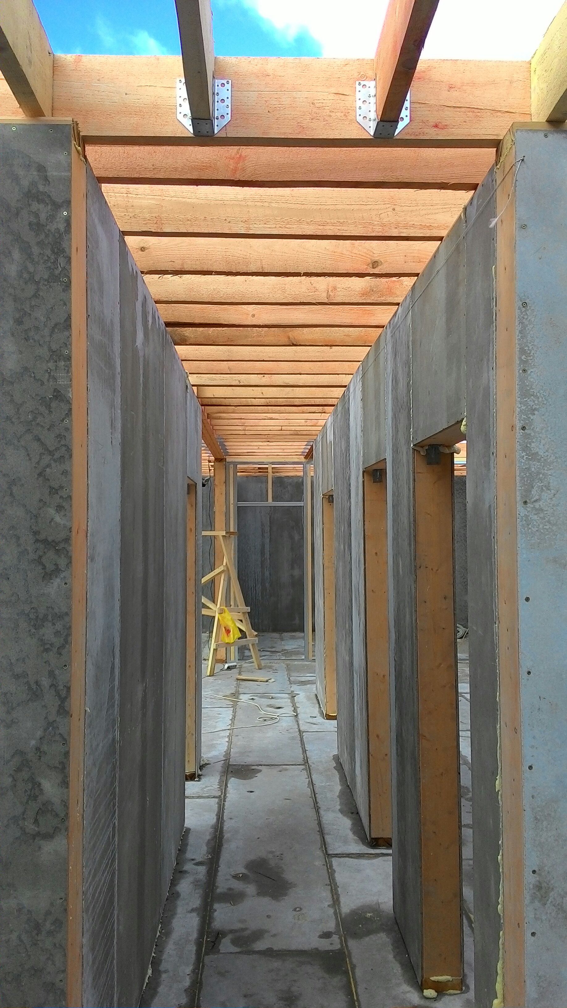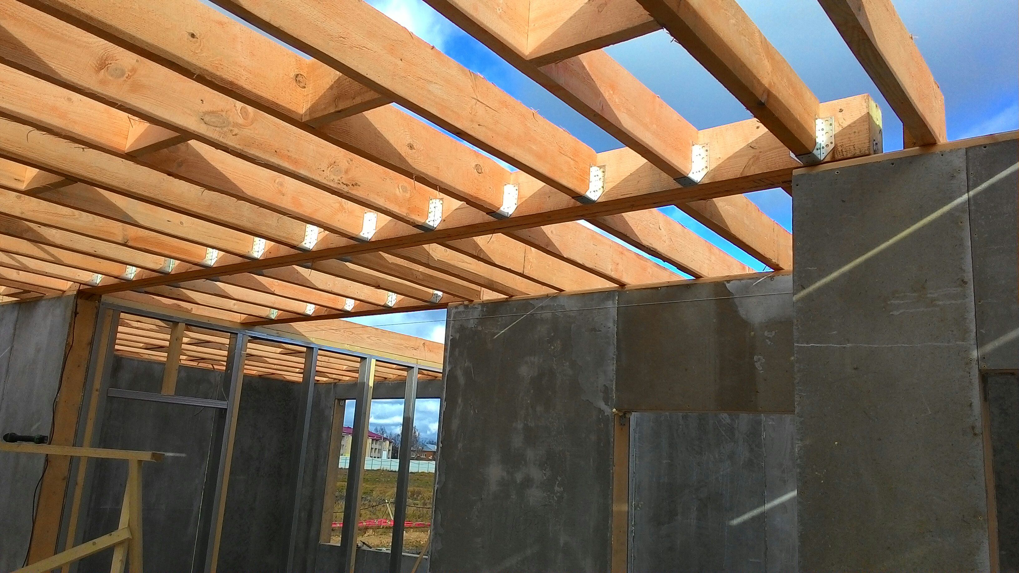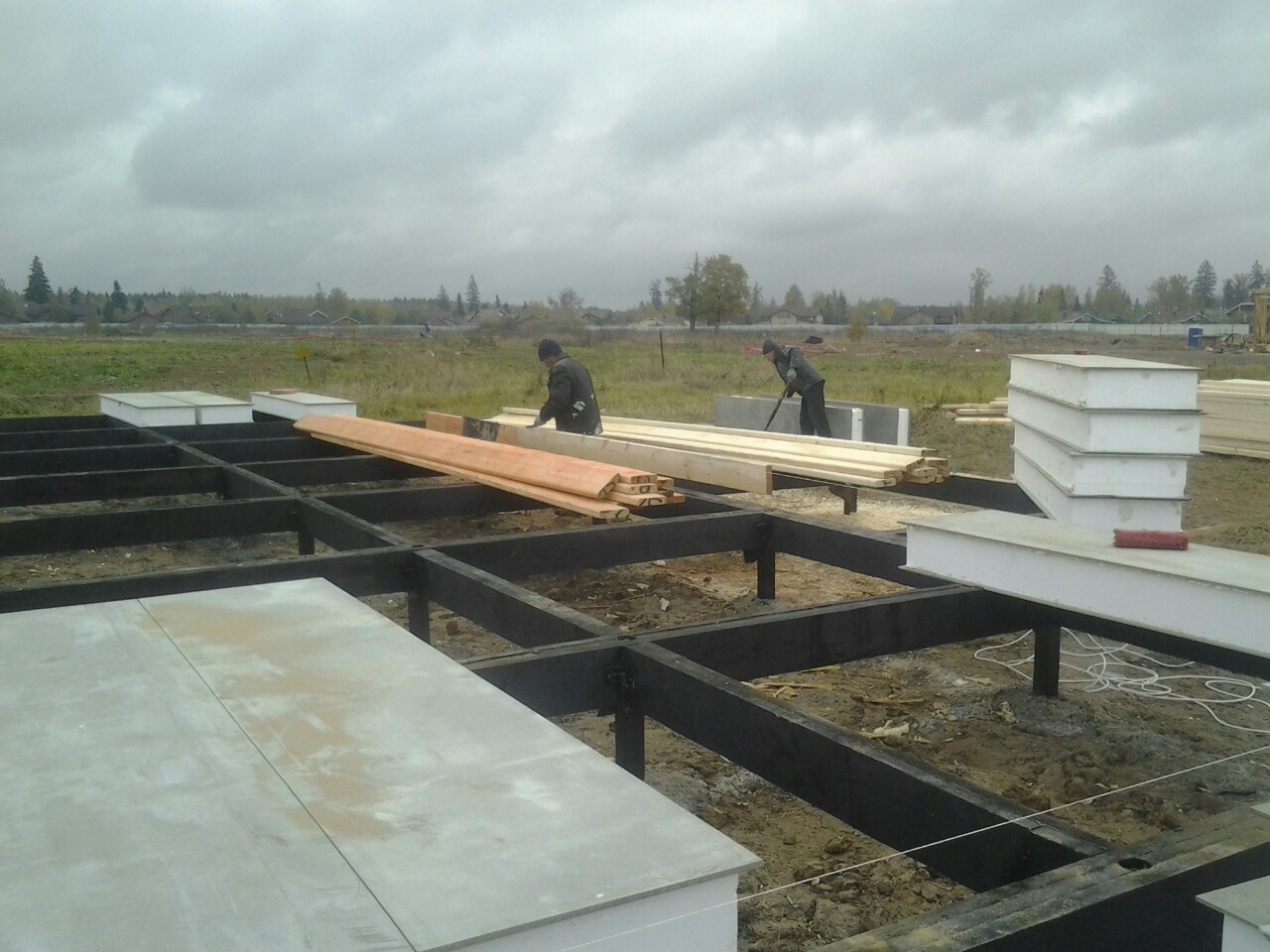 Ростверк изготовлен из калиброванного клееного бруса и защищен снаружи цементно-стружечной плитой