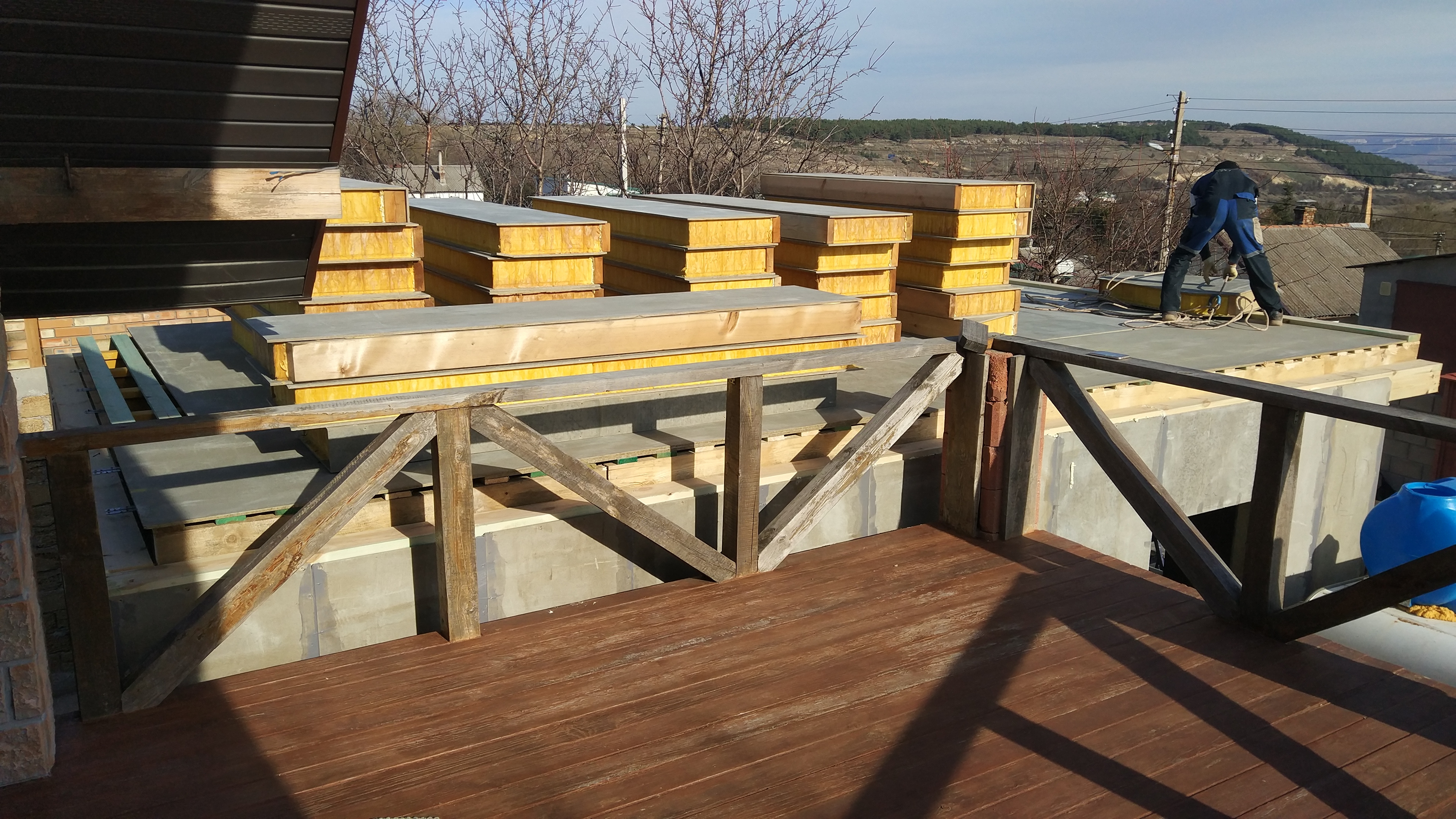Ростверк изготовлен из калиброванного клееного бруса и защищен снаружи цементно-стружечной плитой