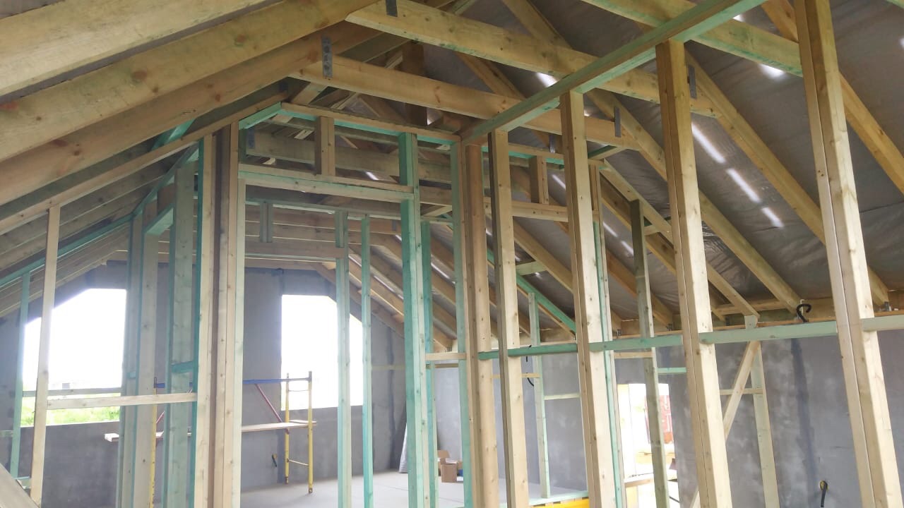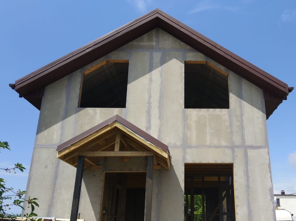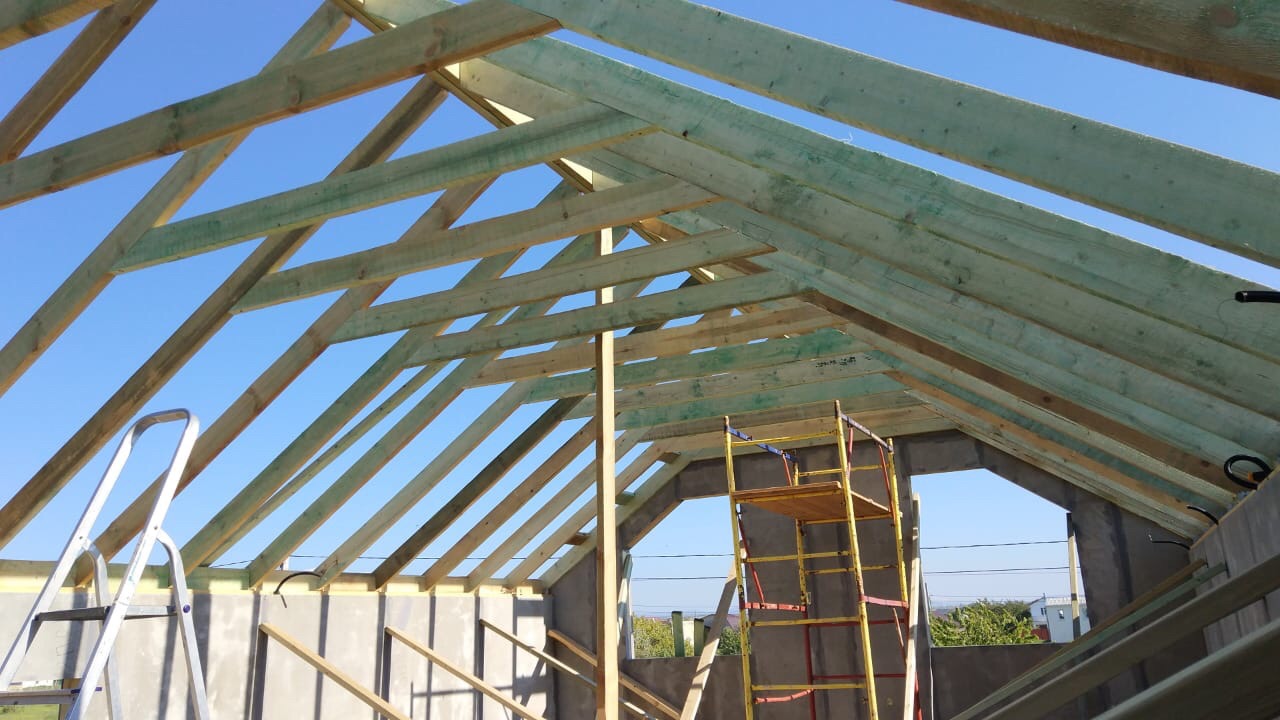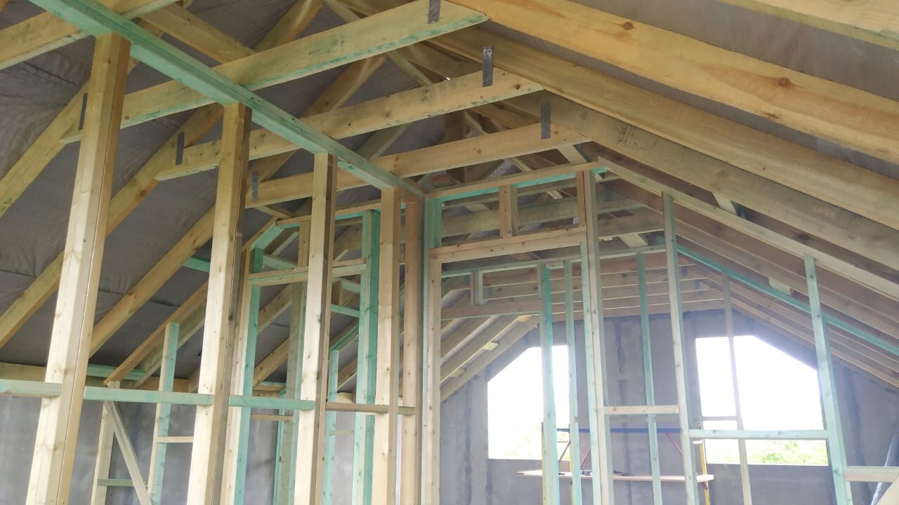 Кровля может быть построена из бруса 150х50мм или SIP панелей. В качестве кровельного материала можно использовать: металлочерепицу, битумную и керамическую черепицу. Также производим кровельные шовные сэндвич-панели.