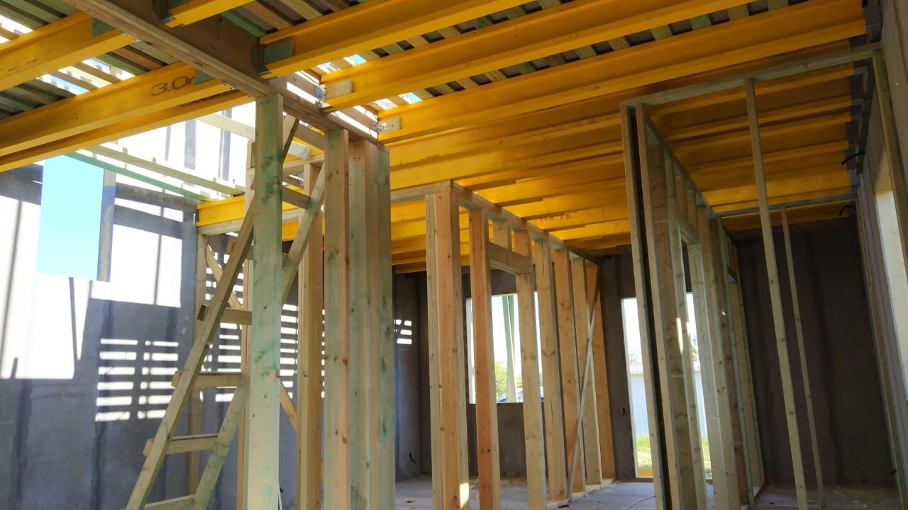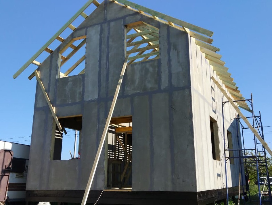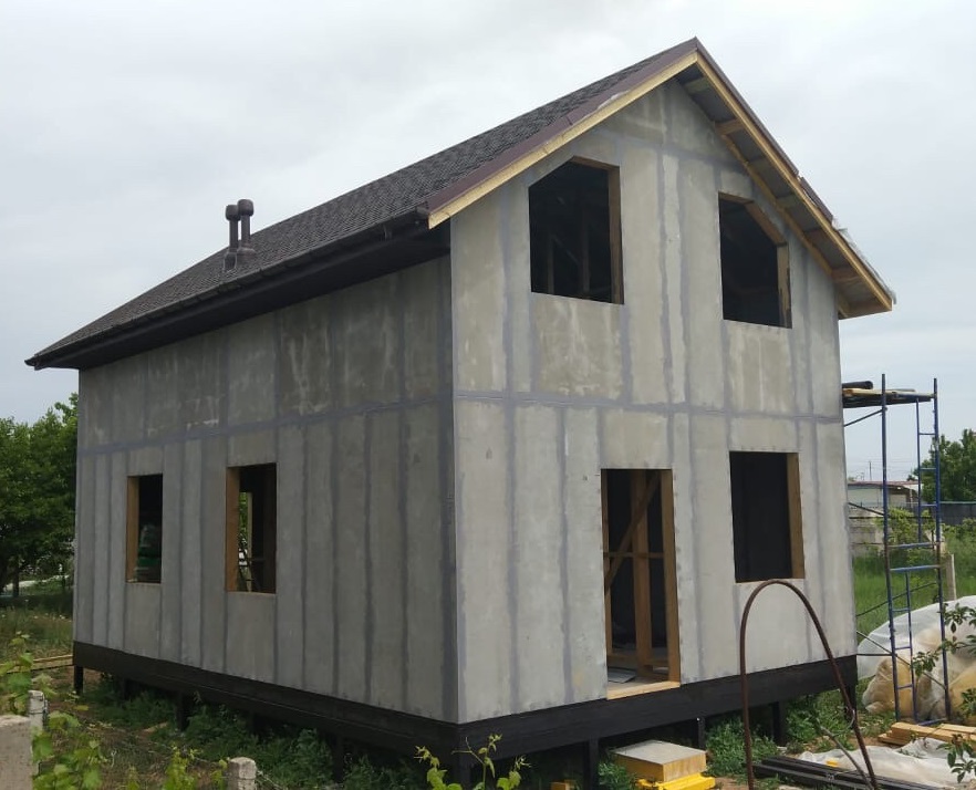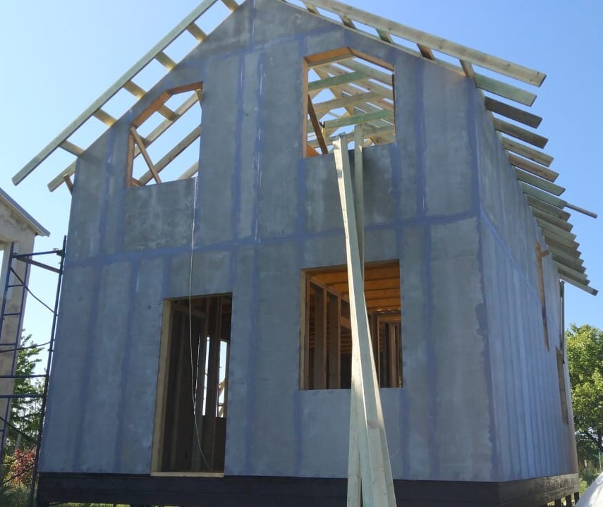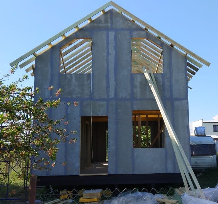 Ростверк изготовлен из калиброванного клееного бруса и защищен снаружи цементно-стружечной плитой