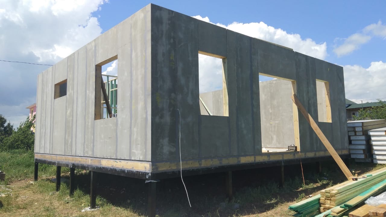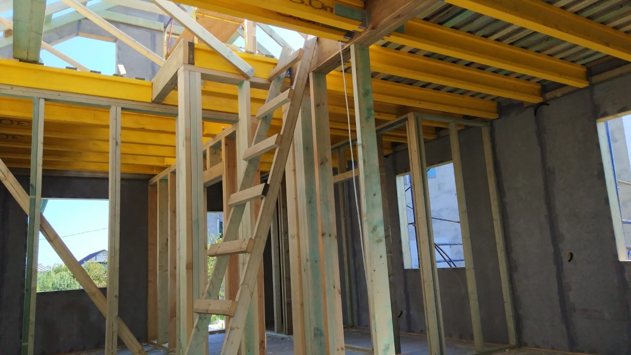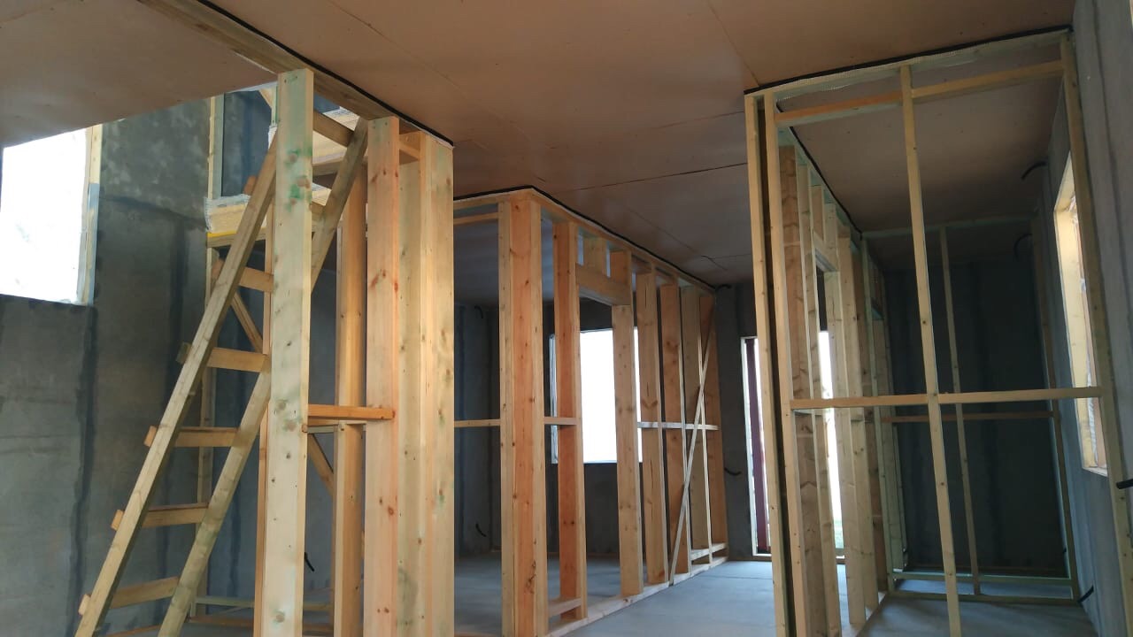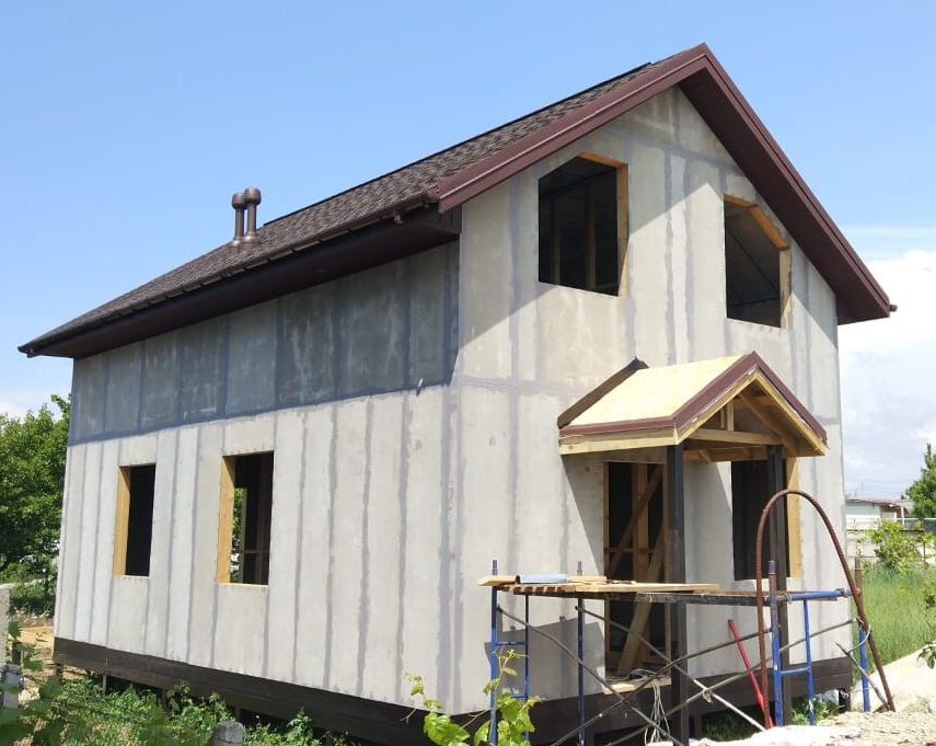 Ростверк изготовлен из калиброванного клееного бруса и защищен снаружи цементно-стружечной плитой