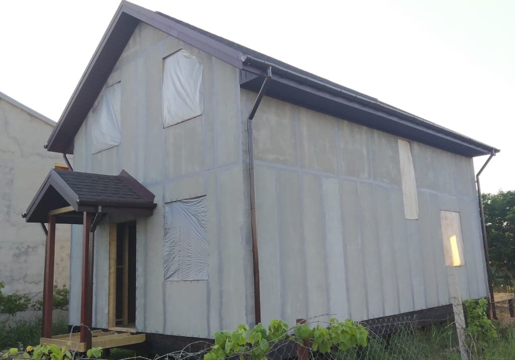• внутренний теплоизоляционный слой с толщиной 148 мм двух типов: полистирол ПСБ-25 (плотностью 25 кг/м3) или минеральная вата ISOVER (плотностью 64 кг/м3).