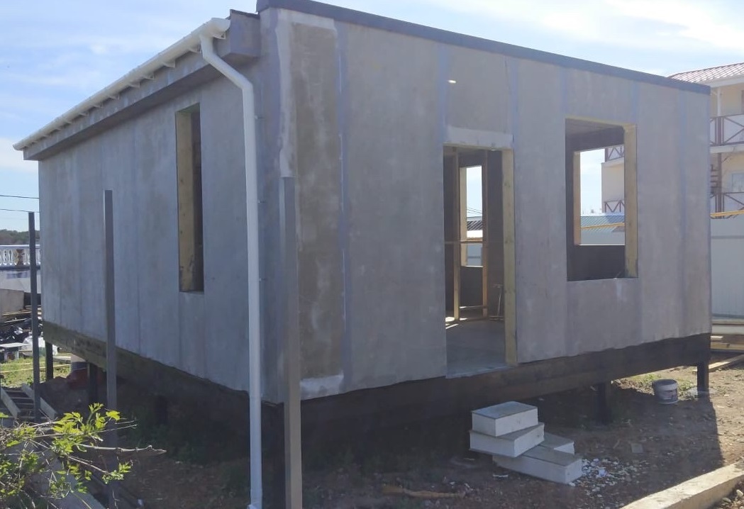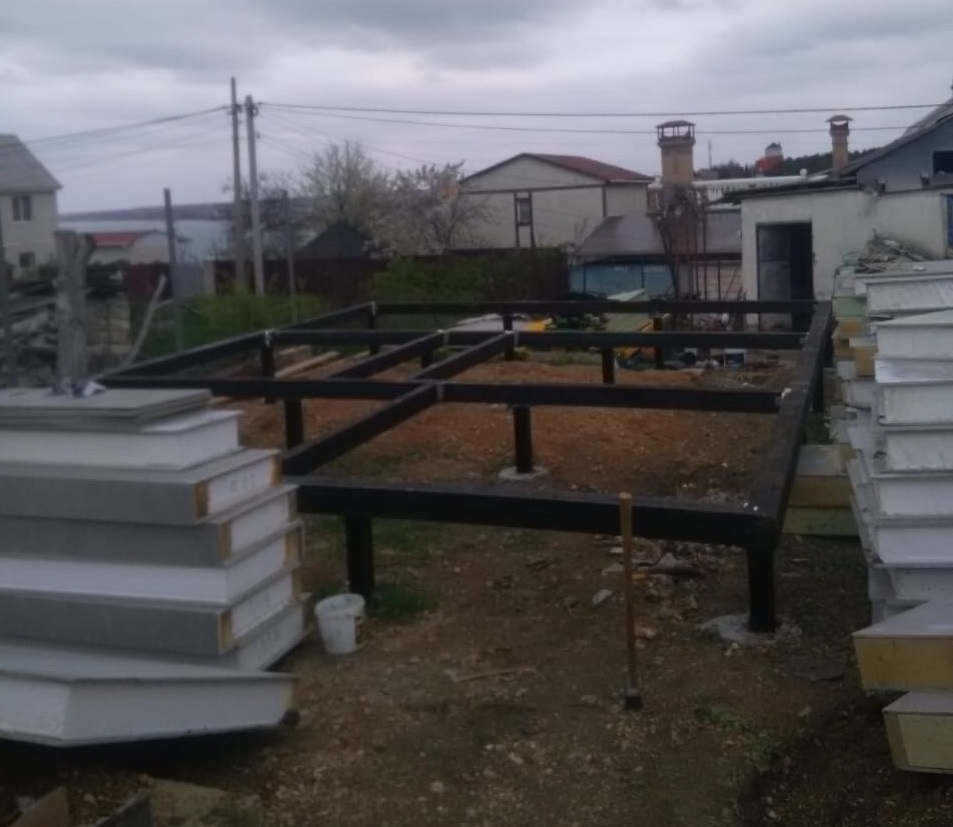 Ростверк изготовлен из калиброванного клееного бруса и защищен снаружи цементно-стружечной плитой