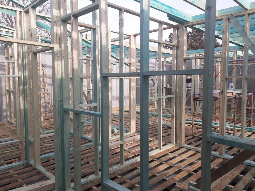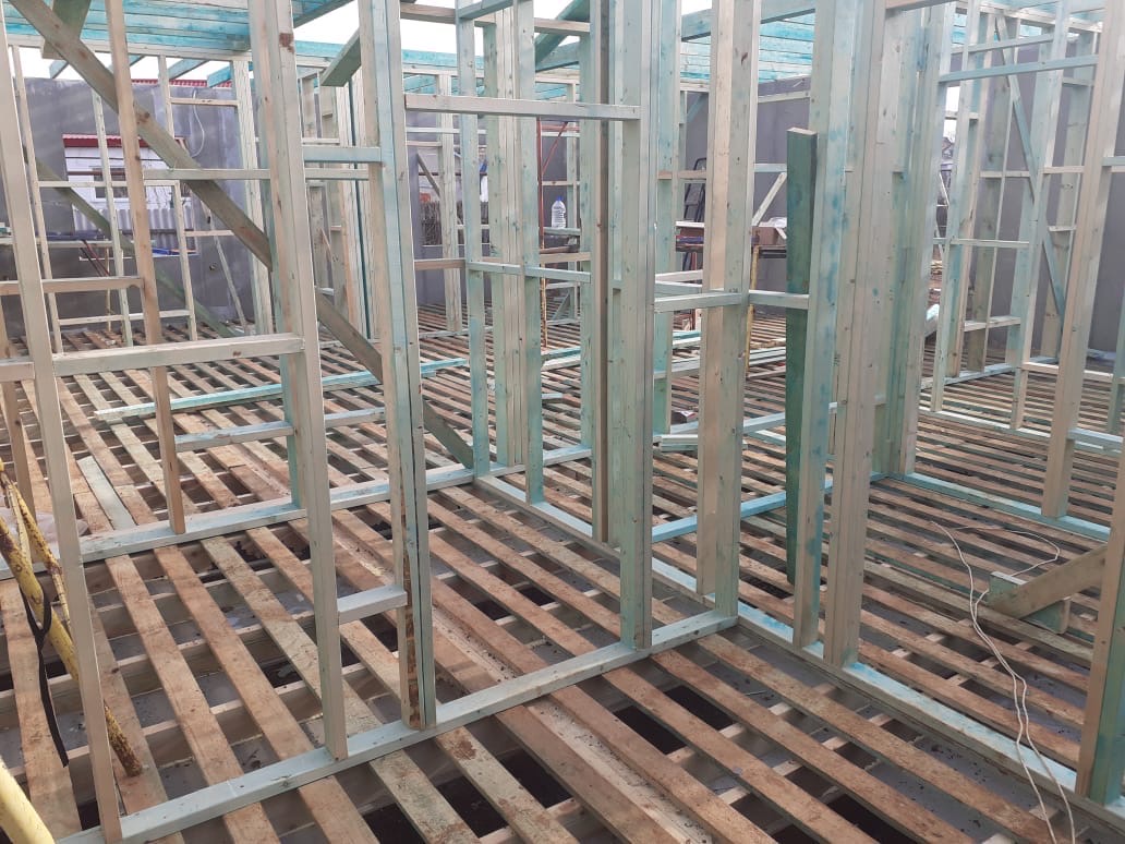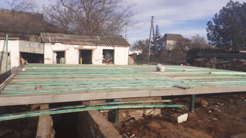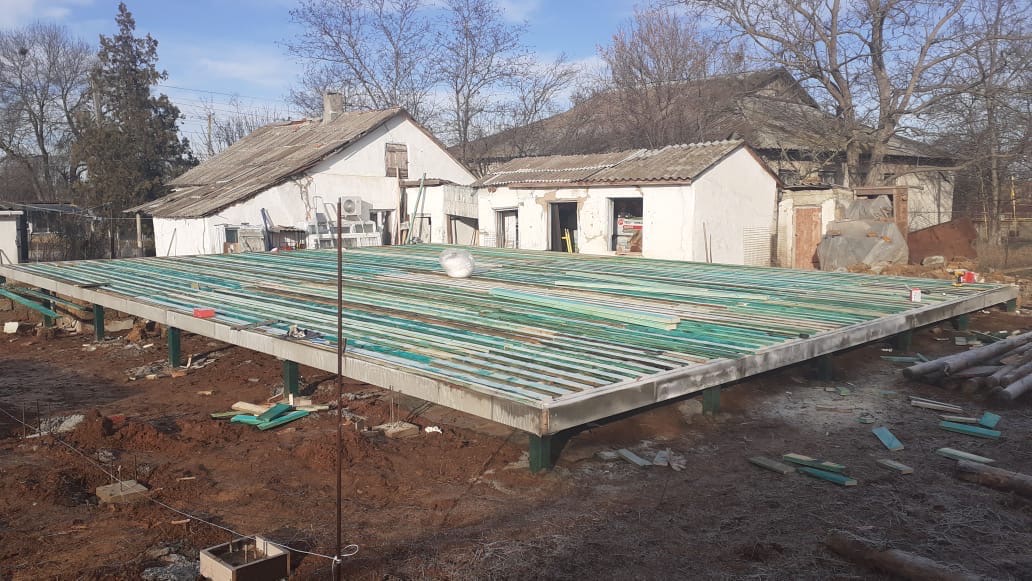 Ростверк изготовлен из калиброванного клееного бруса и защищен снаружи цементно-стружечной плитой
