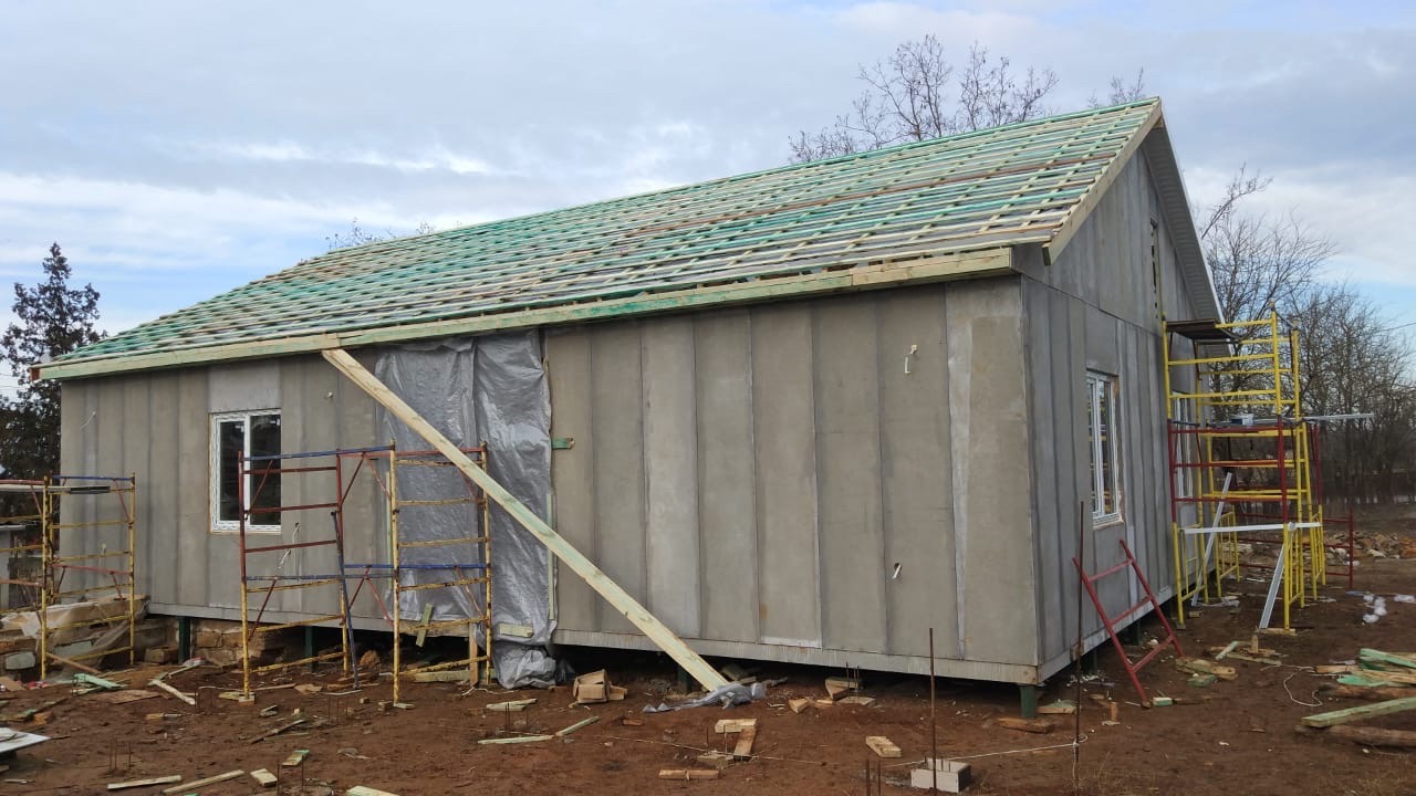 Кровля может быть построена из бруса 150х50мм или SIP панелей. В качестве кровельного материала можно использовать: металлочерепицу, битумную и керамическую черепицу. Также производим кровельные шовные сэндвич-панели.