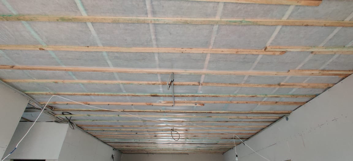 Потолок состоит из двутавровых балок 250 мм, а шаг монтажа балок - 600 мм.