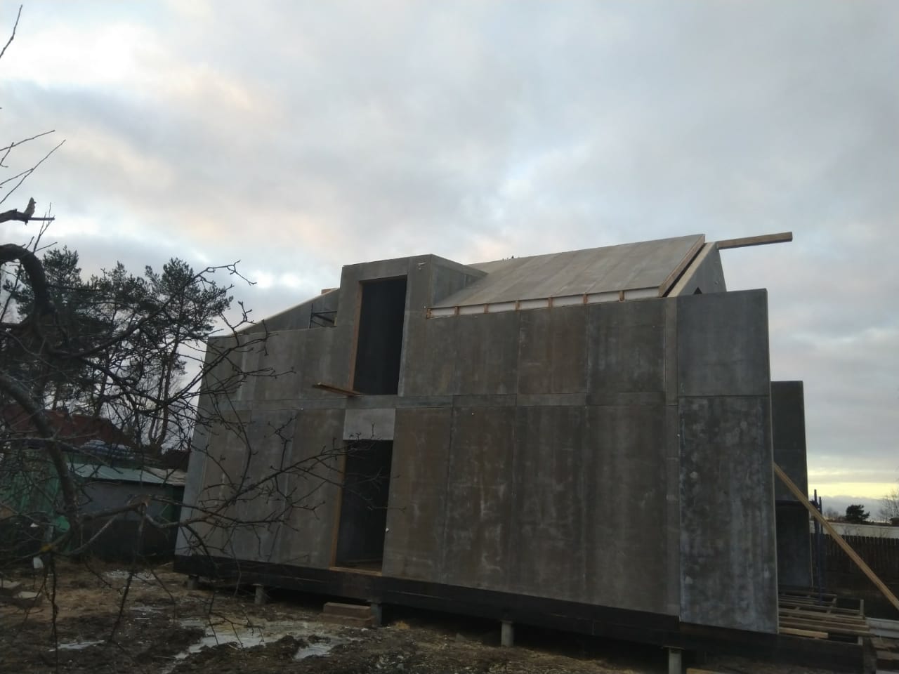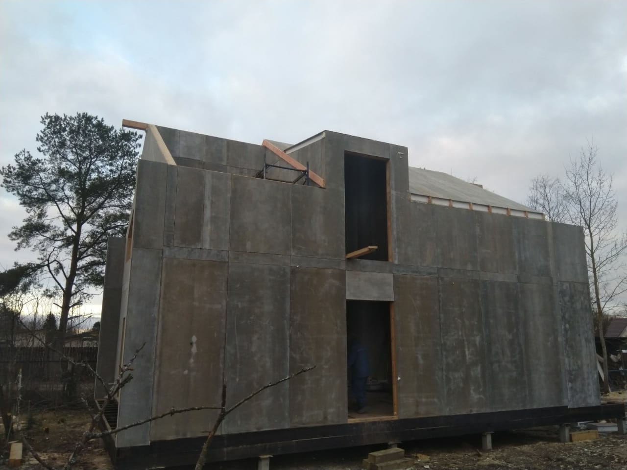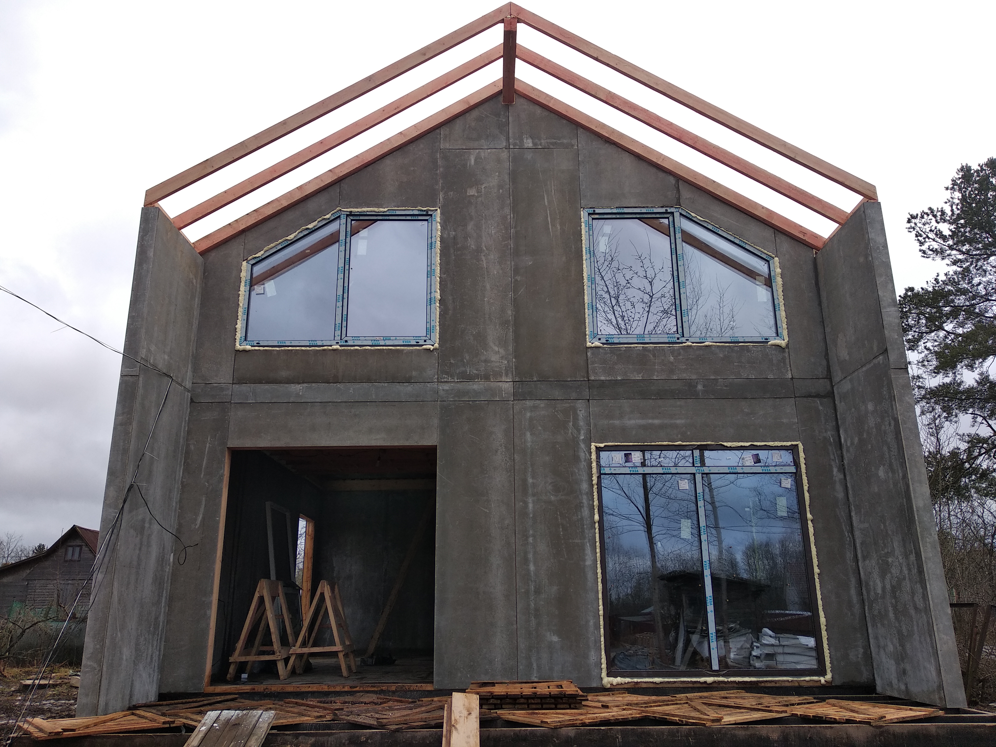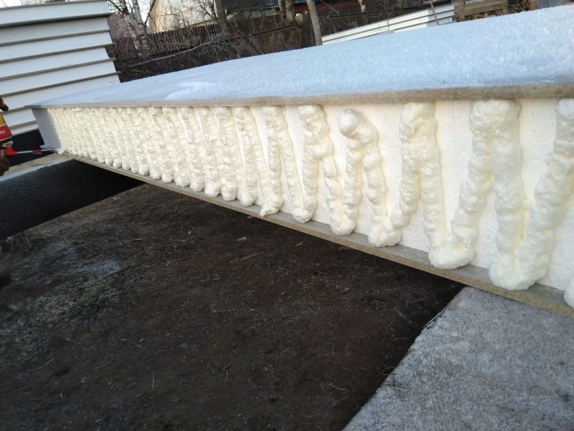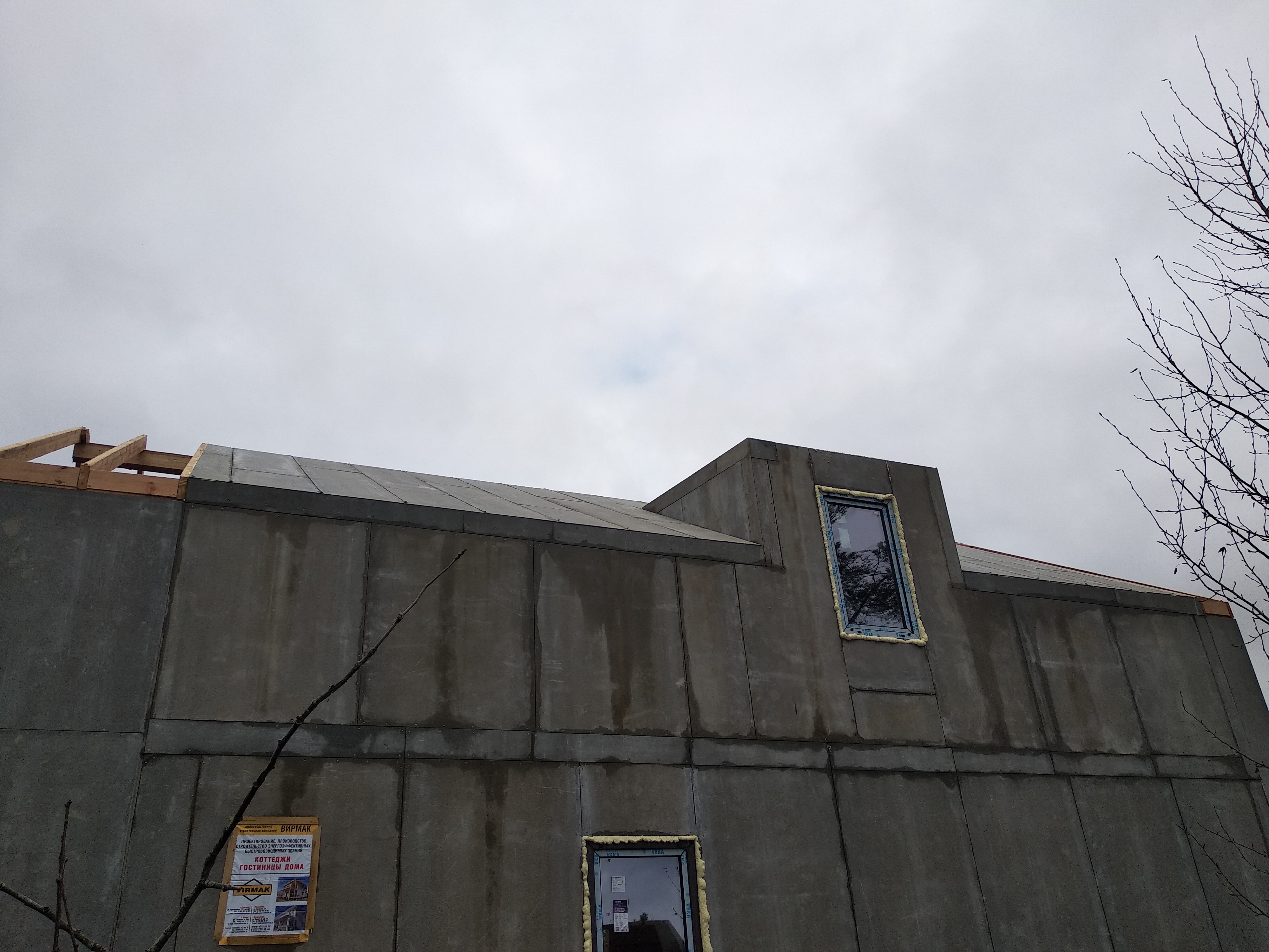 Крыша выполнена также из СИП панелей с ЦСП, чердачное перекрытие полностью отсутствует.