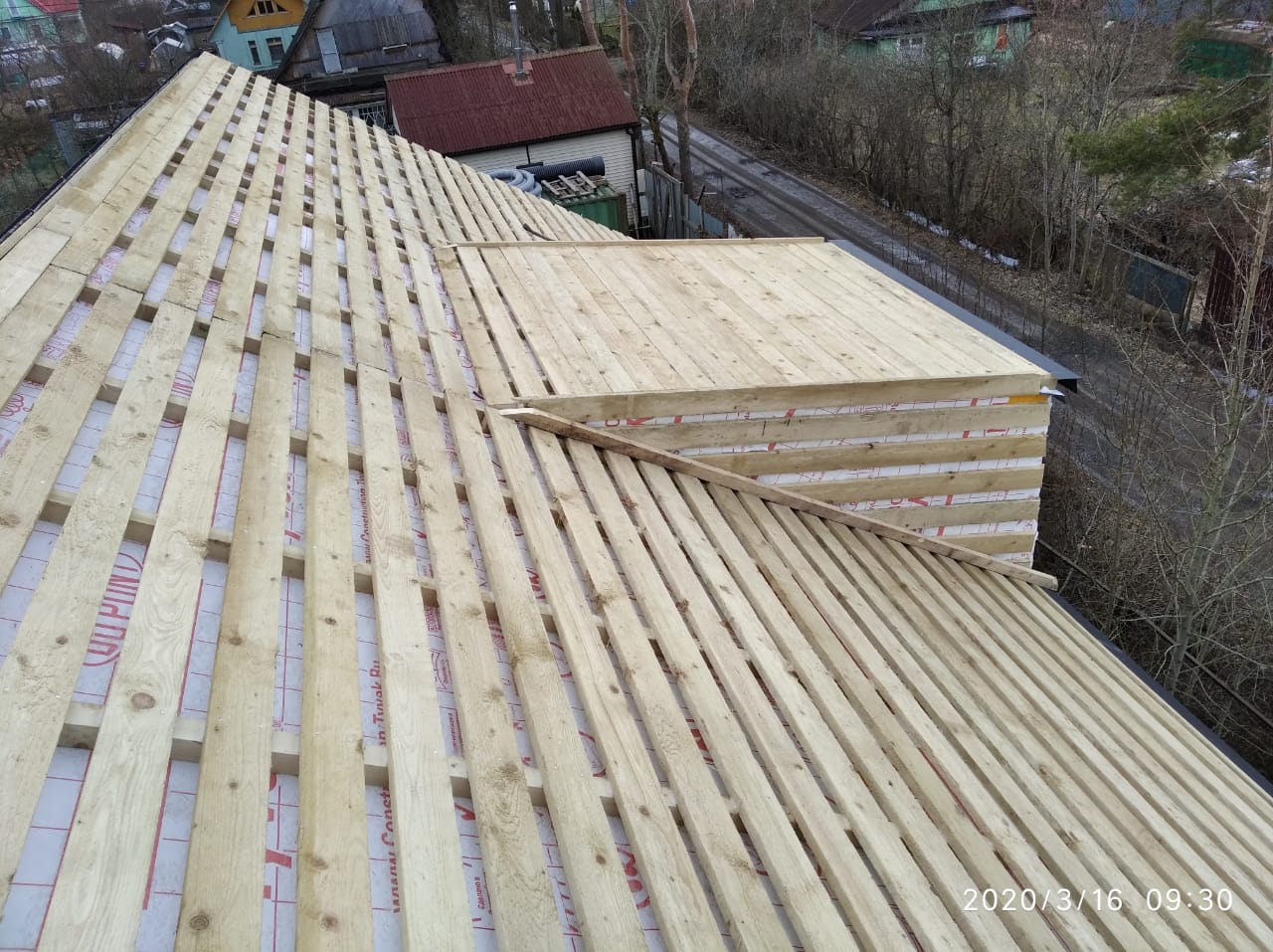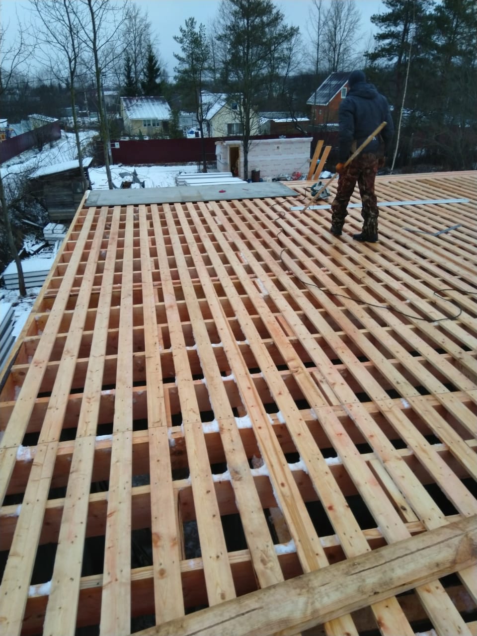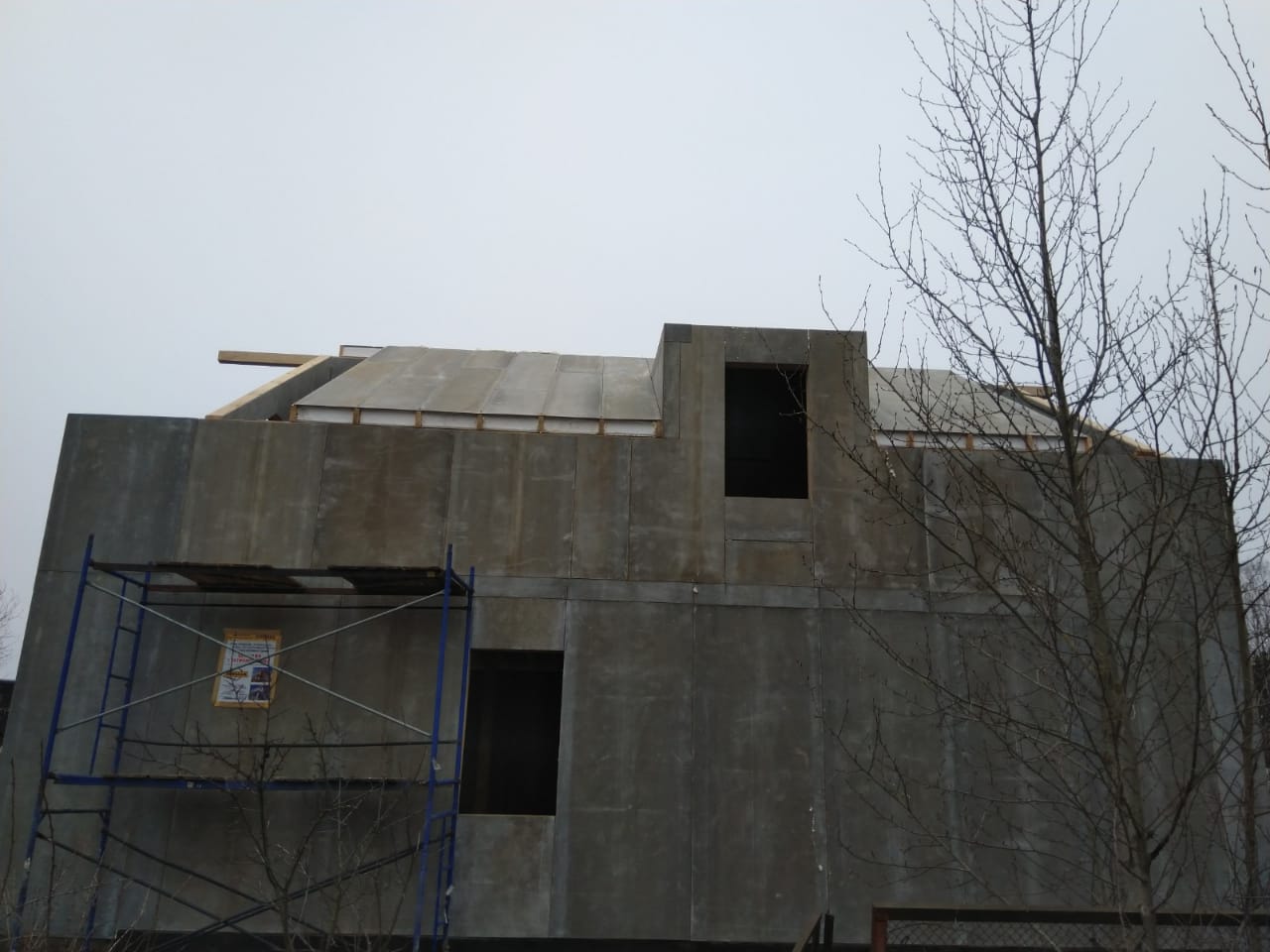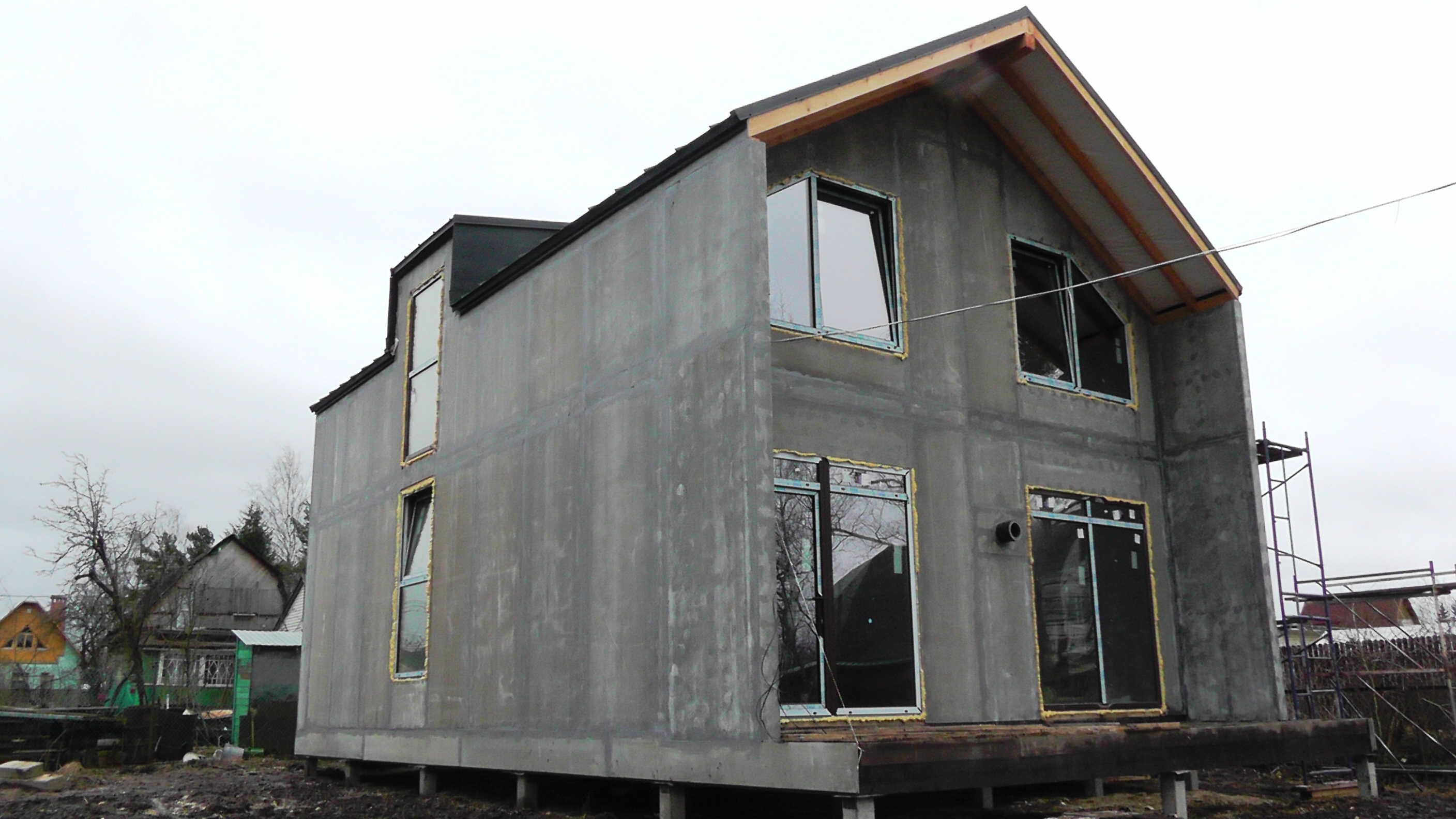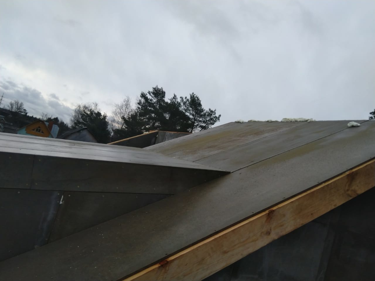 Крыша выполнена также из СИП панелей с ЦСП, чердачное перекрытие полностью отсутствует.