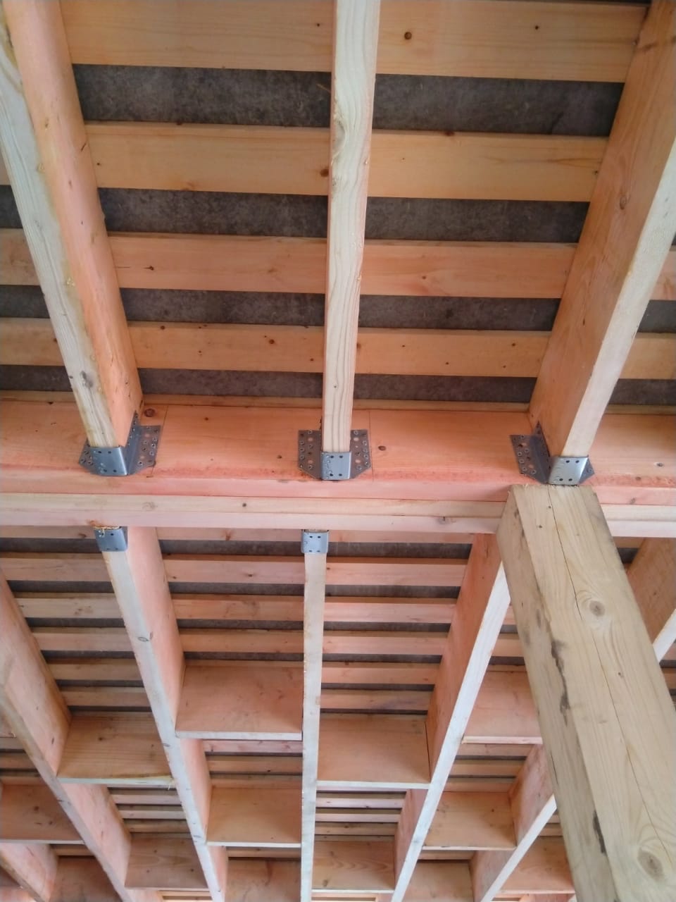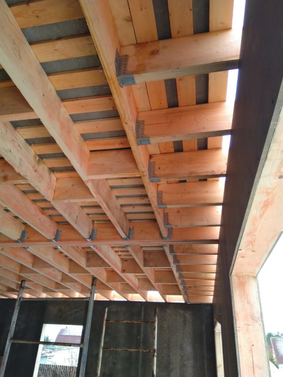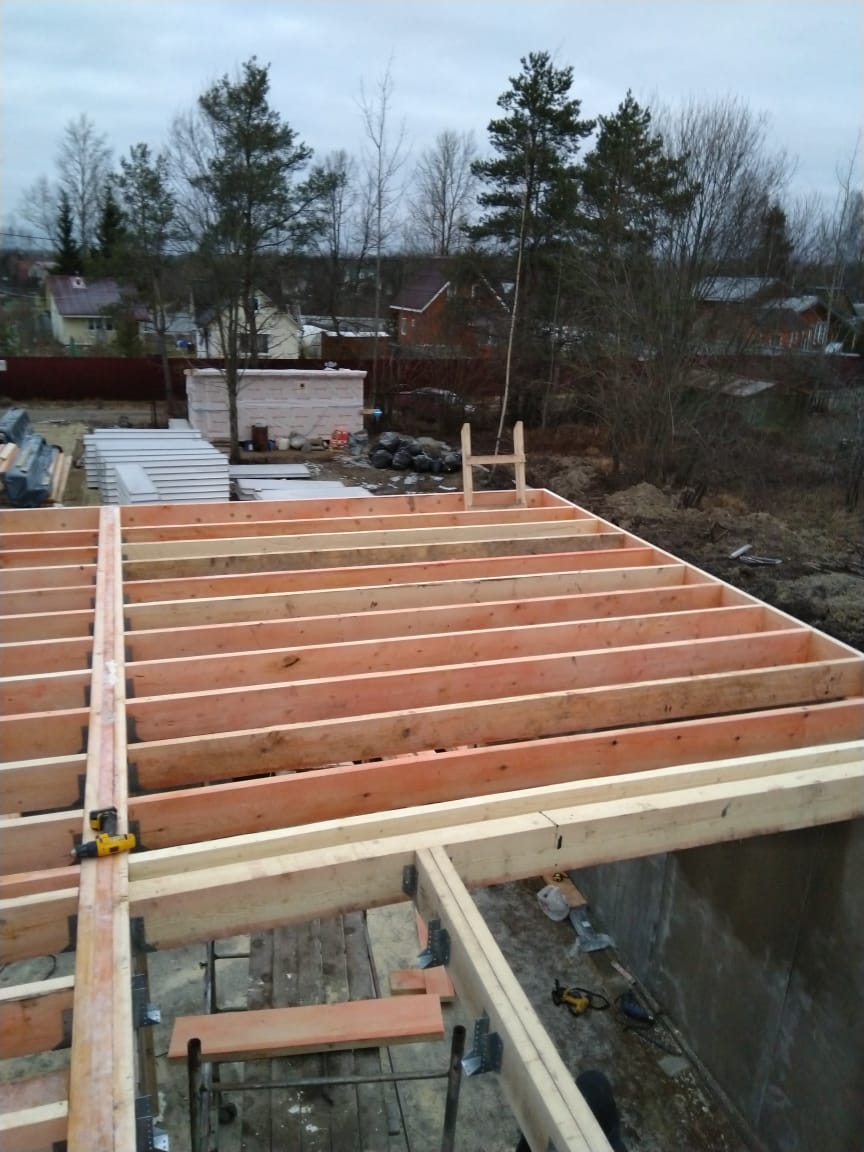 В межэтажных перекрытиях в качестве несущих лаг мы применяем двутавровые балки собственного производства с влагостойкой 24 мм. фанерой в сердечнике.