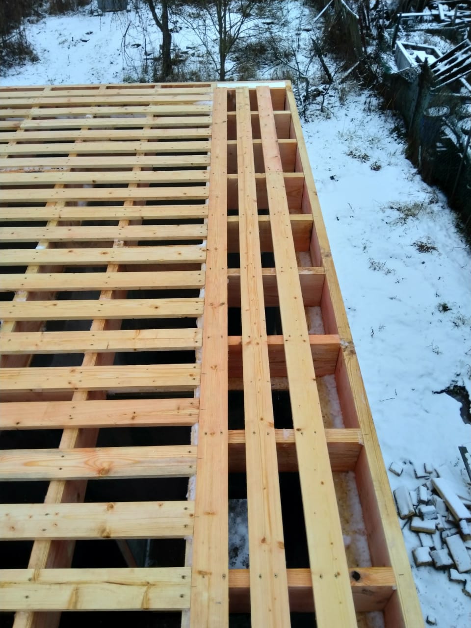 Ростверк изготовлен из калиброванного клееного бруса и защищен снаружи цементно-стружечной плитой
