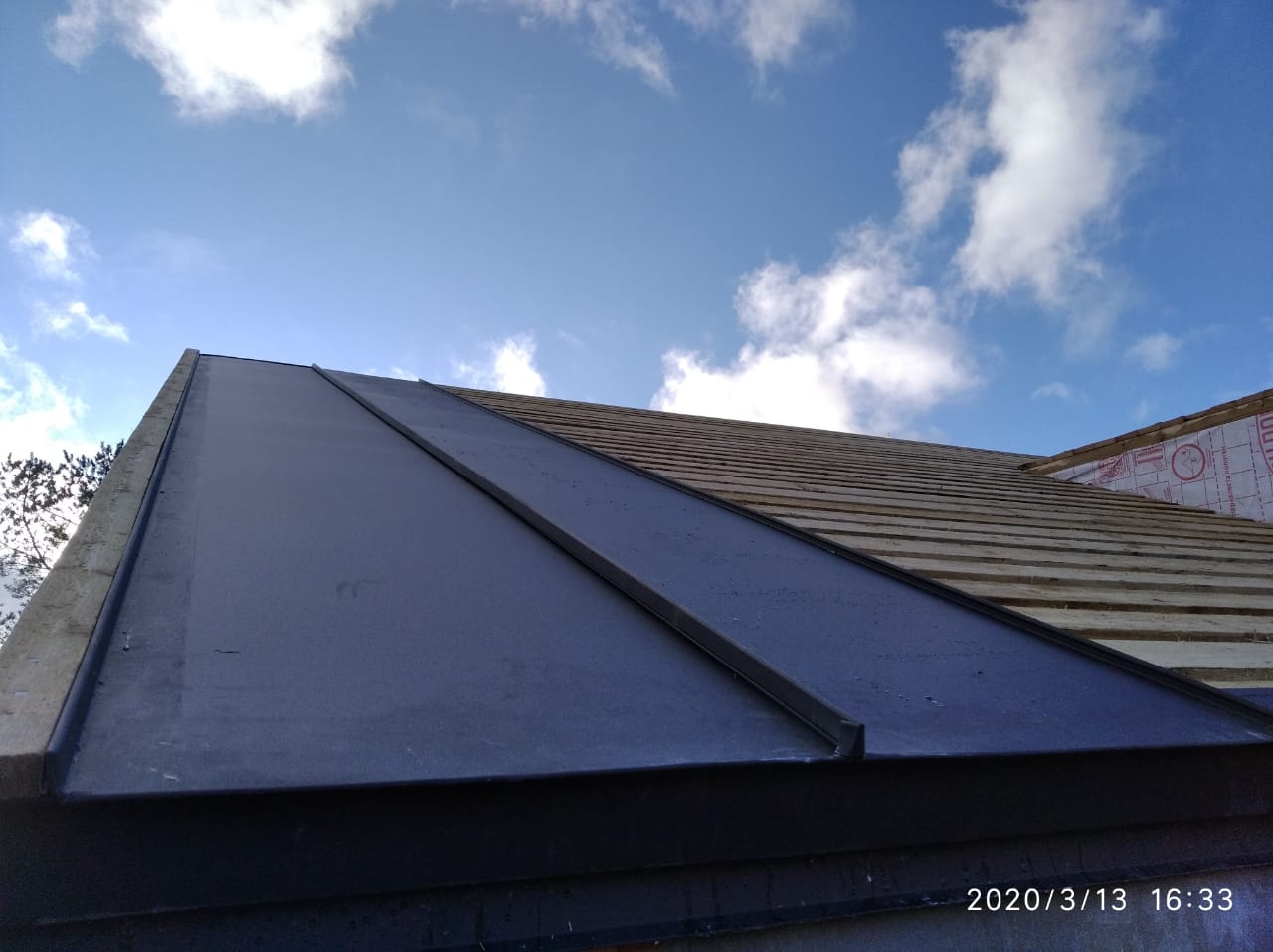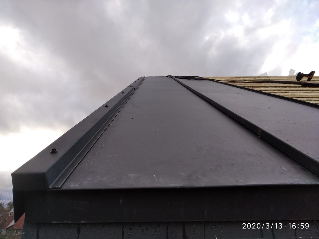 Кровля – клик-фальц чёрного цвета (RAL 9005) от GrandLine премиальной серии Velur.