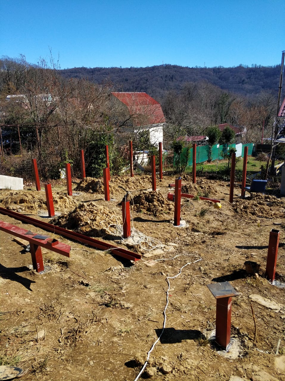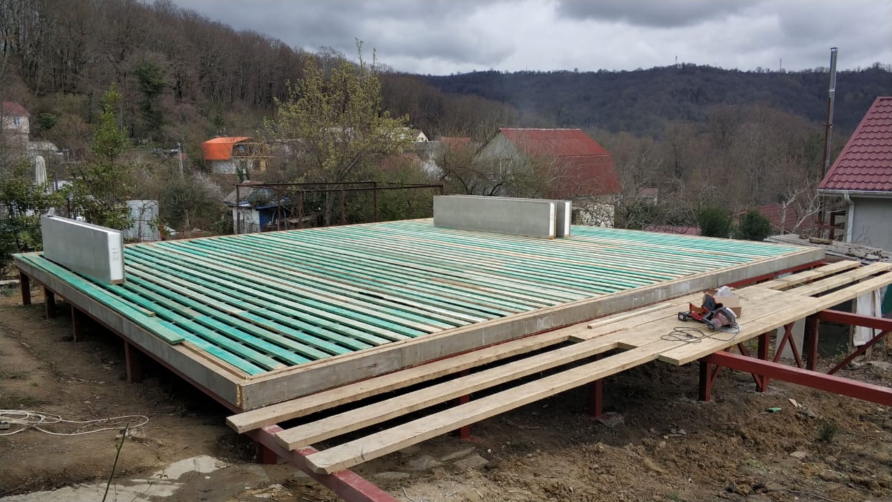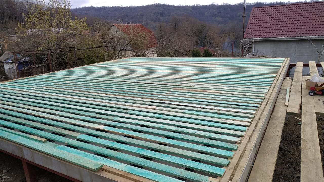 Ростверк изготовлен из калиброванного клееного бруса и защищен снаружи цементно-стружечной плитой