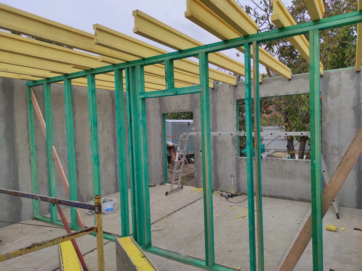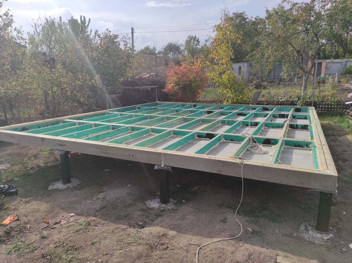 Ростверк изготовлен из калиброванного клееного бруса и защищен снаружи цементно-стружечной плитой
