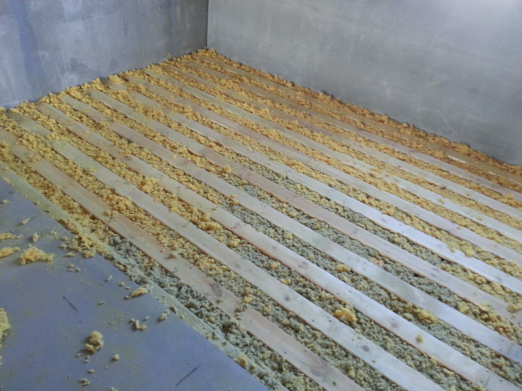 А в качестве звукоизоляционного материала мы применяем эковату собственного производства на основе базальта. Плотность нашей эковаты составляет 70- 80кг/м3!