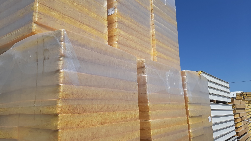 С начала к нам приходят пачки с минеральной плитой ISOVER. Затем мы ISOVER распиливаем на полосы – ламели требуемой ширины.