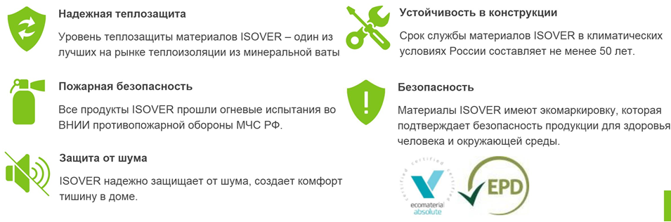 Безопасный утеплитель соответствует международным экостандартам EN 15804 и ISO 14025, рекомендован для использования в медицинских учреждениях, детских садах. У нас имеются результаты испытаний, подтверждающие безвредность ISOVER.