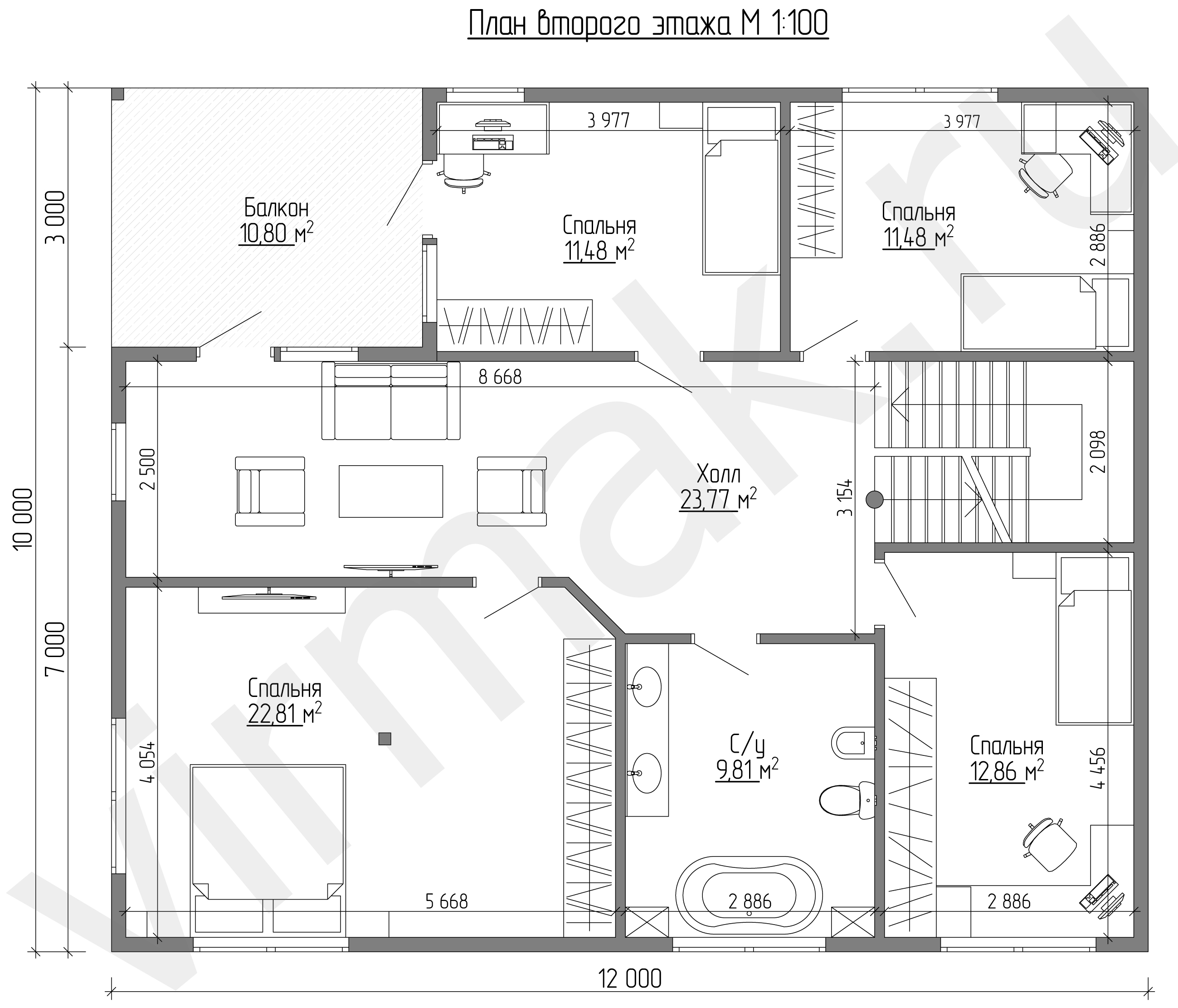 План этажа м 1:100