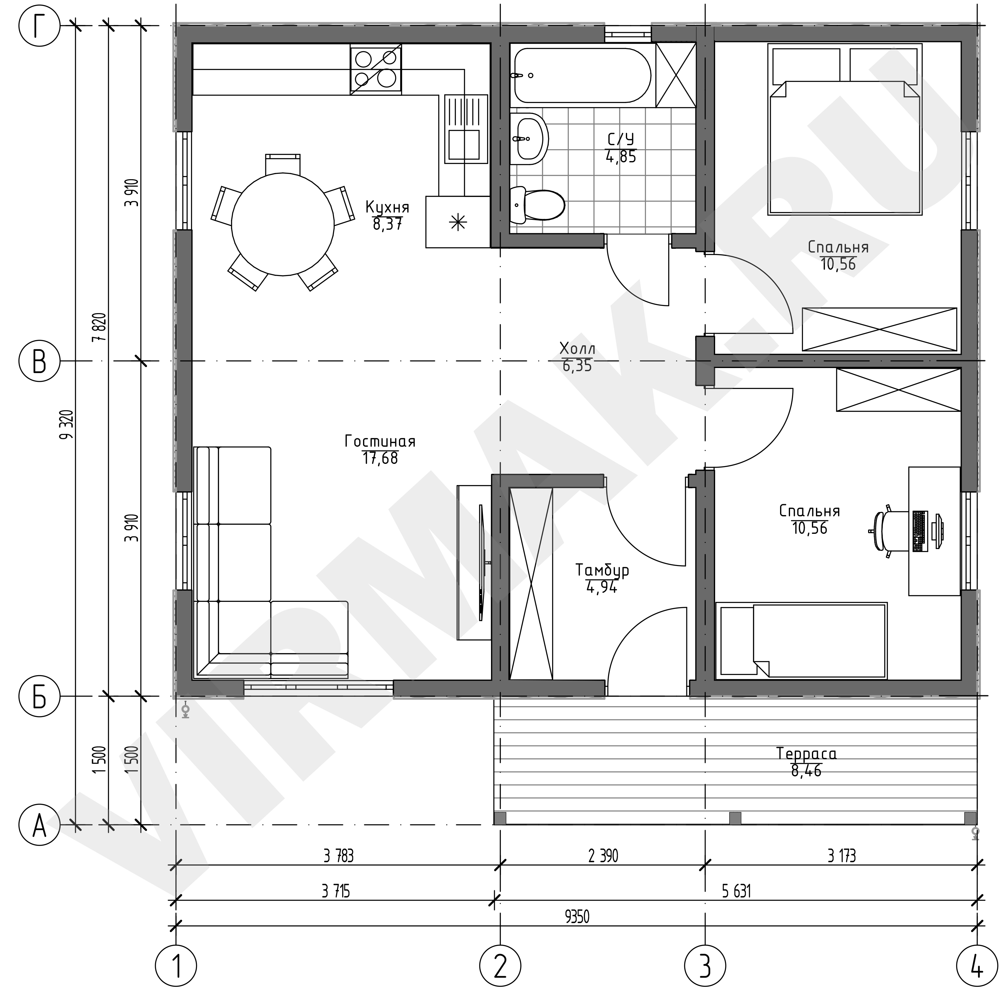 * В данную комплектацию не входит фундамент. Его тип и стоимость определяется индивидуально в зависимости от особенностей вашего участка.