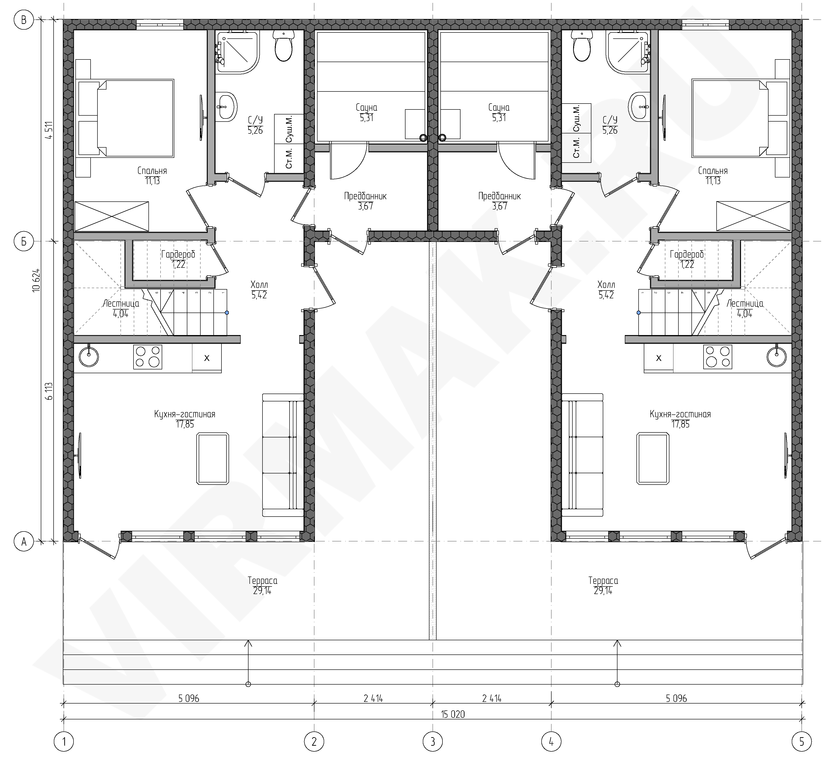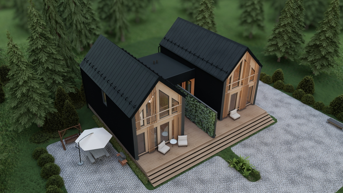 — материал готов для монтажа стен и укомплектован по проекту. В данном случае дом полностью готов к сборке стен, перегородок, а также каркаса межэтажного перекрытия.