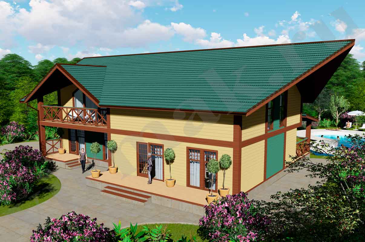 — материал готов для монтажа стен и укомплектован по проекту. В данном случае дом полностью готов к сборке стен, перегородок, а также каркаса межэтажного перекрытия.
