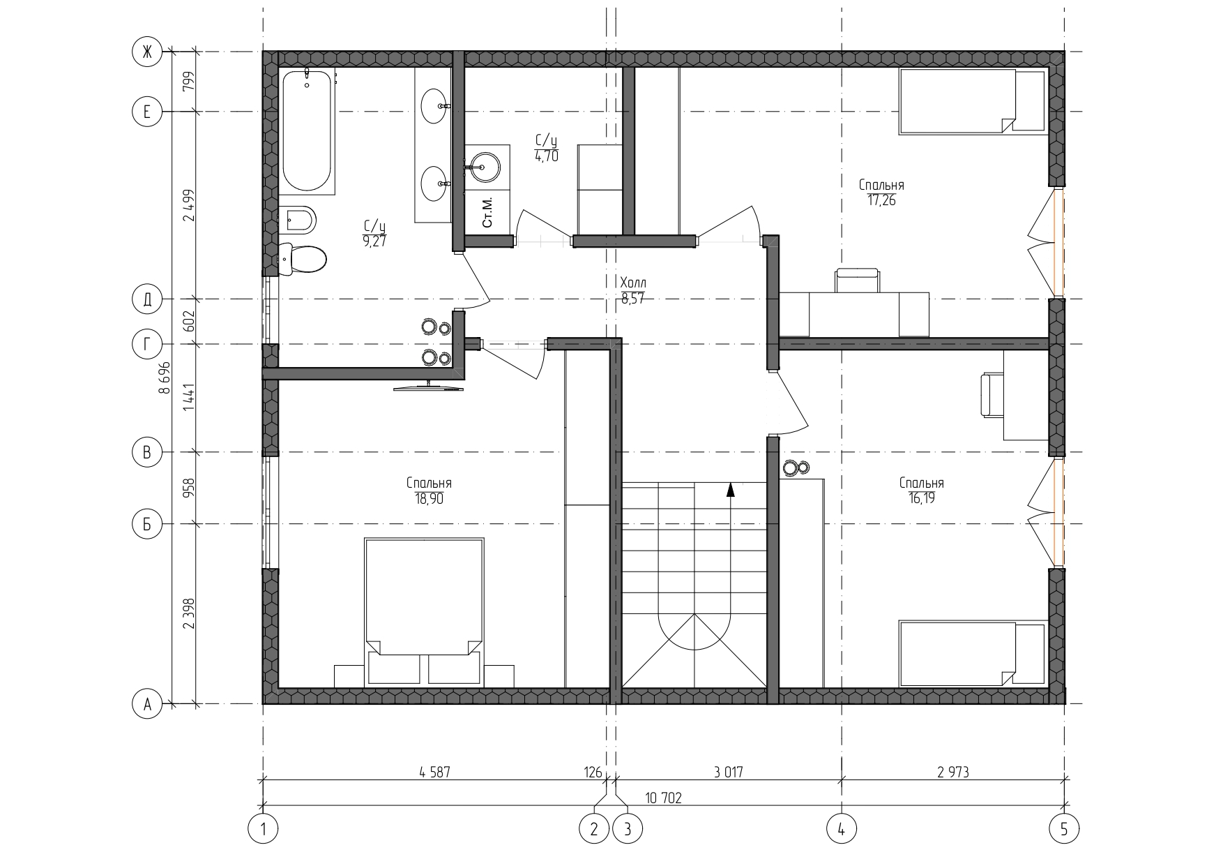— материал готов для монтажа стен и укомплектован по проекту. В данном случае дом полностью готов к сборке стен, перегородок, а также каркаса межэтажного перекрытия.