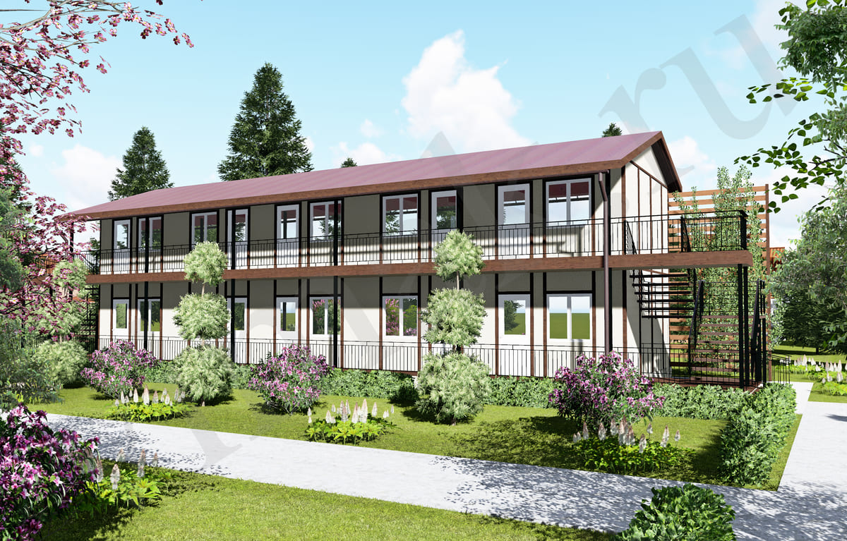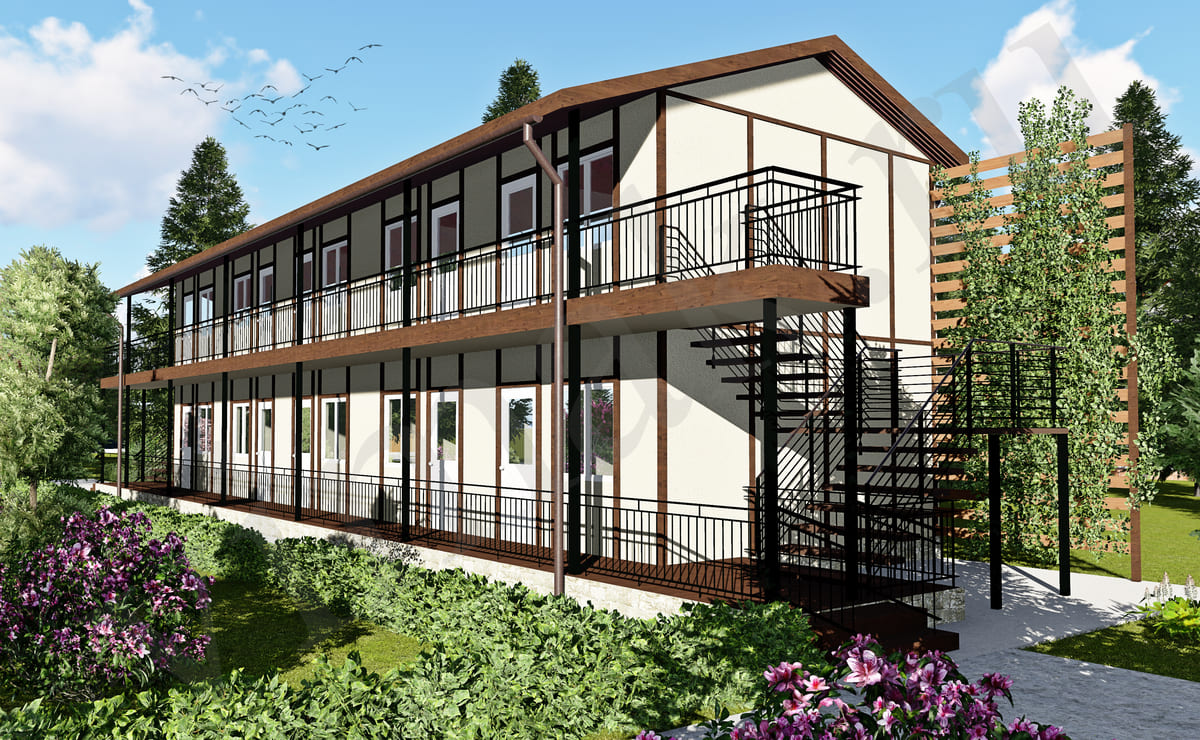 • Межэтажное перекрытие: Балки перекрытия БДК 250/300/350х65 мм, верхняя поперечная обрешетка 22х90 мм, сплошной настил листы ЦСП 12-16 мм. Звукоизоляция перекрытия. Пароизоляция перекрытия. Готовность пола и потолка под чистовую отделку.