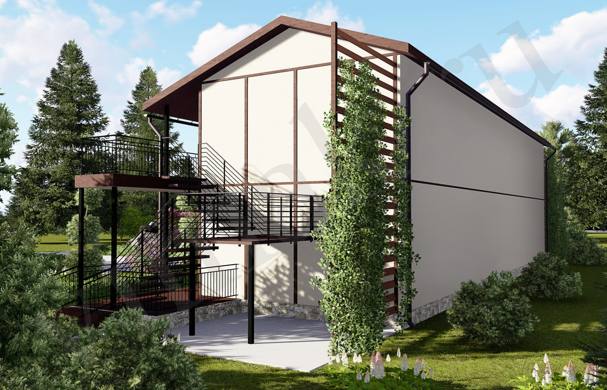• Плоская или скатная утепленная кровля (пароизоляционная пленка, утеплитель вата на основе стекловолокна или базальта, гидро-ветрозащитная мембрана) с покрытием из металлочерепицы, полимерной мембраны или гибкой черепицы. (цена отличается от выбранного типа) (Ширина карнизного свеса от 30 см. Водосточная система в стоимость не входит