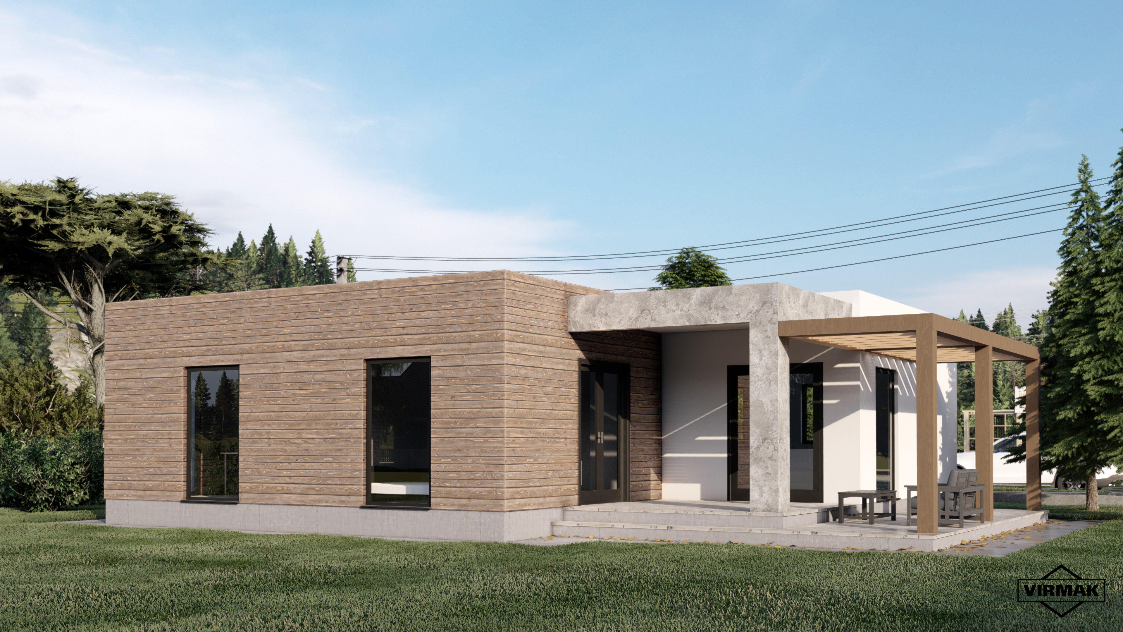 • Плоская или скатная утепленная кровля (пароизоляционная пленка, утеплитель вата на основе стекловолокна или базальта, гидро-ветрозащитная мембрана) с покрытием из металлочерепицы, полимерной мембраны или гибкой черепицы. (цена отличается от выбранного типа) (Ширина карнизного свеса от 30 см. Водосточная система в стоимость не входит