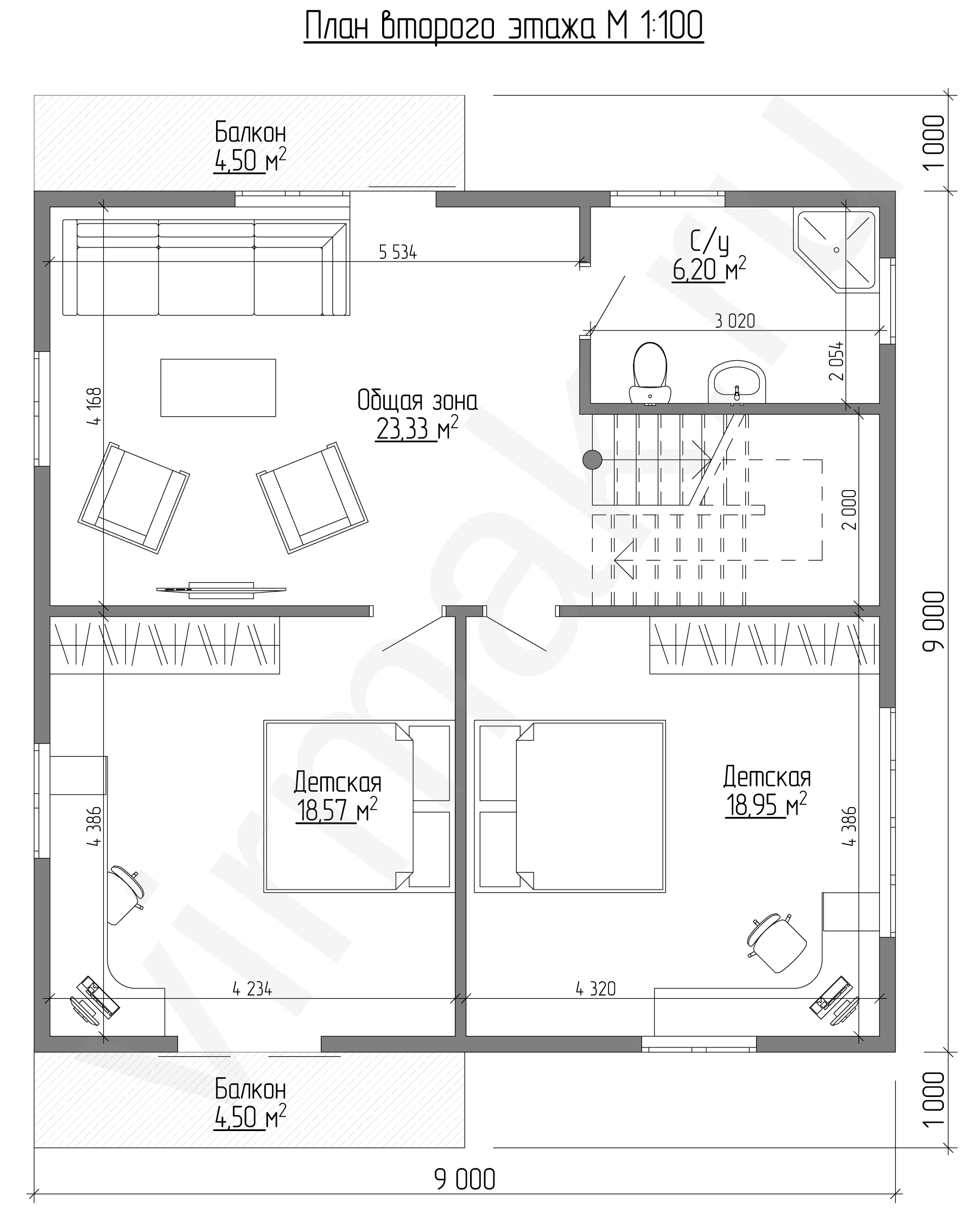 План этажа м 1:100