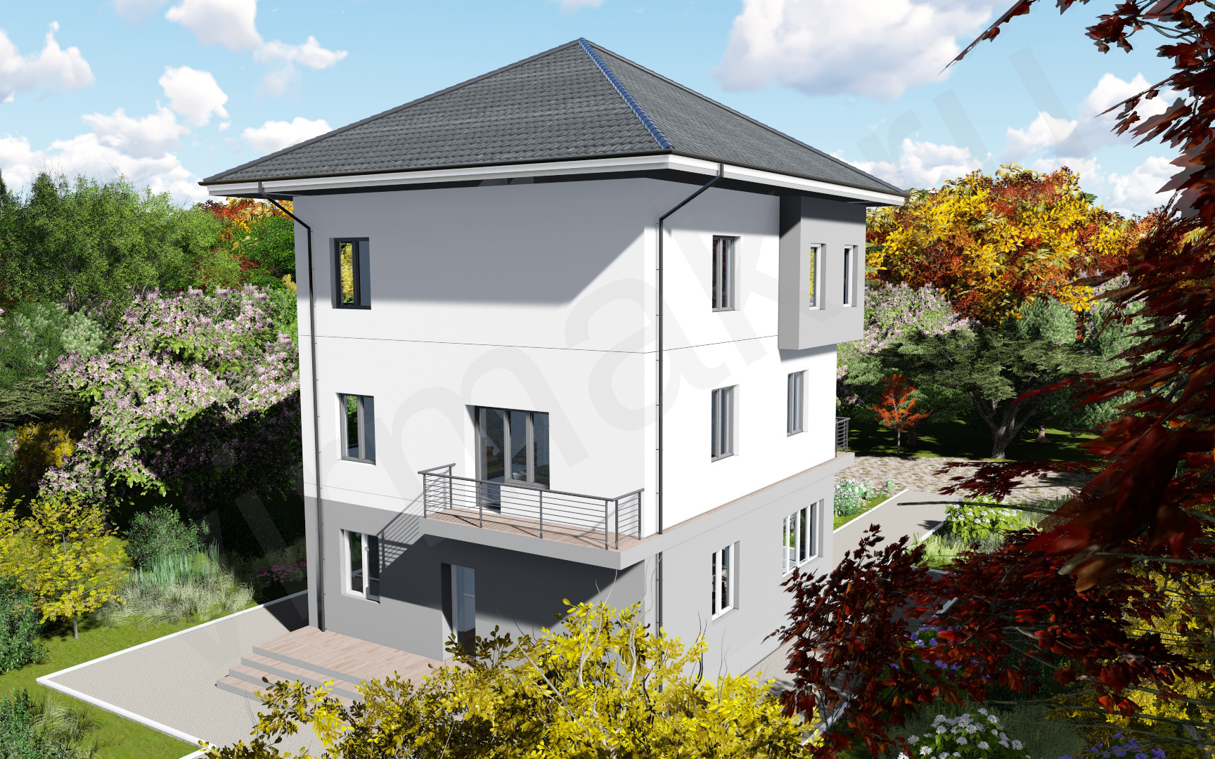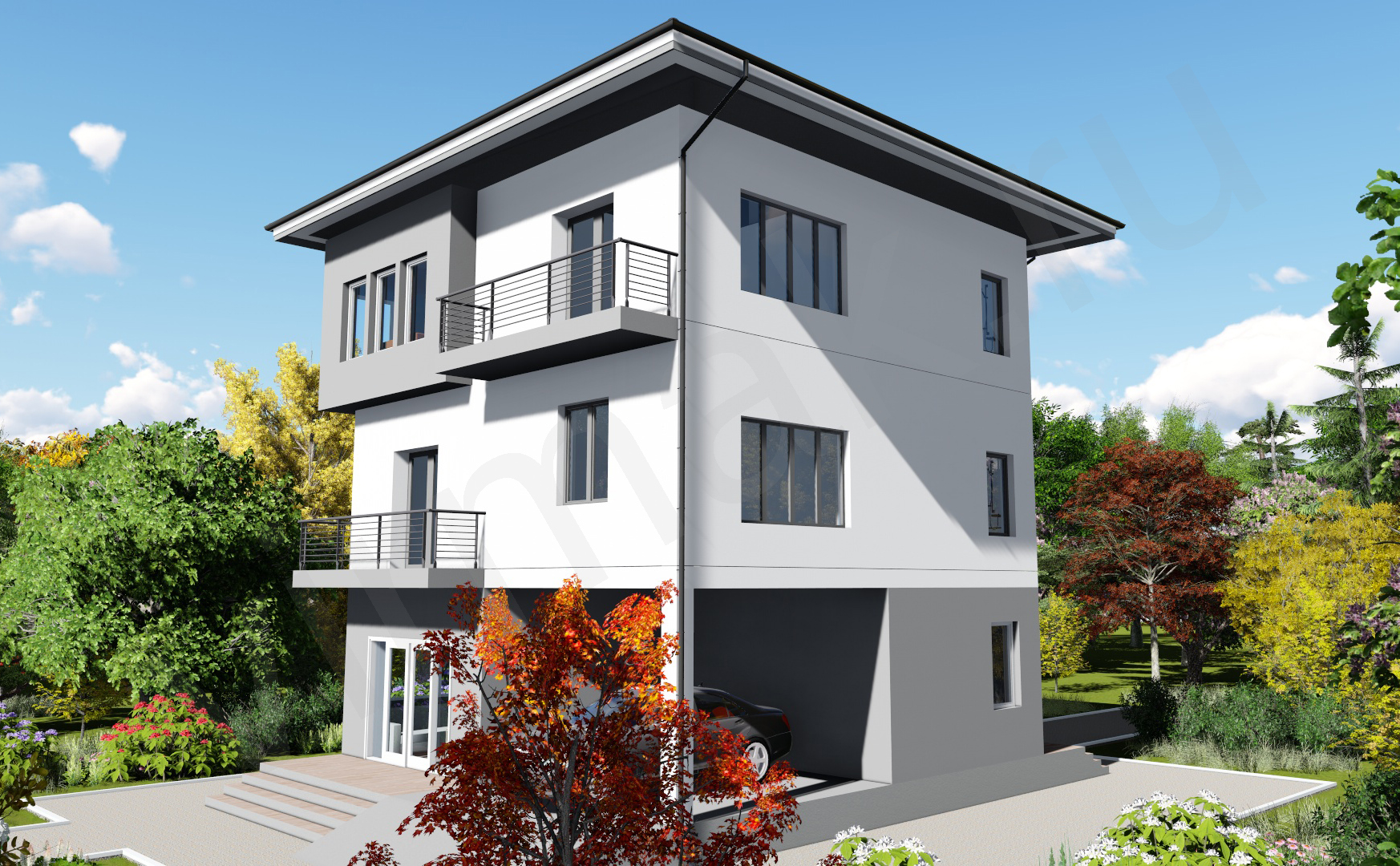 • Плоская или скатная утепленная кровля (пароизоляционная пленка, утеплитель вата на основе стекловолокна или базальта, гидро-ветрозащитная мембрана) с покрытием из металлочерепицы, полимерной мембраны или гибкой черепицы. (цена отличается от выбранного типа) (Ширина карнизного свеса от 30 см. Водосточная система в стоимость не входит