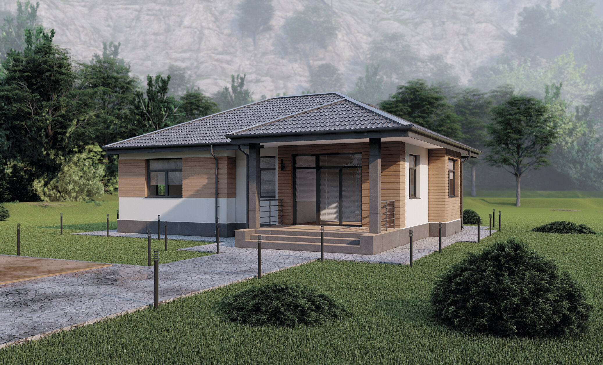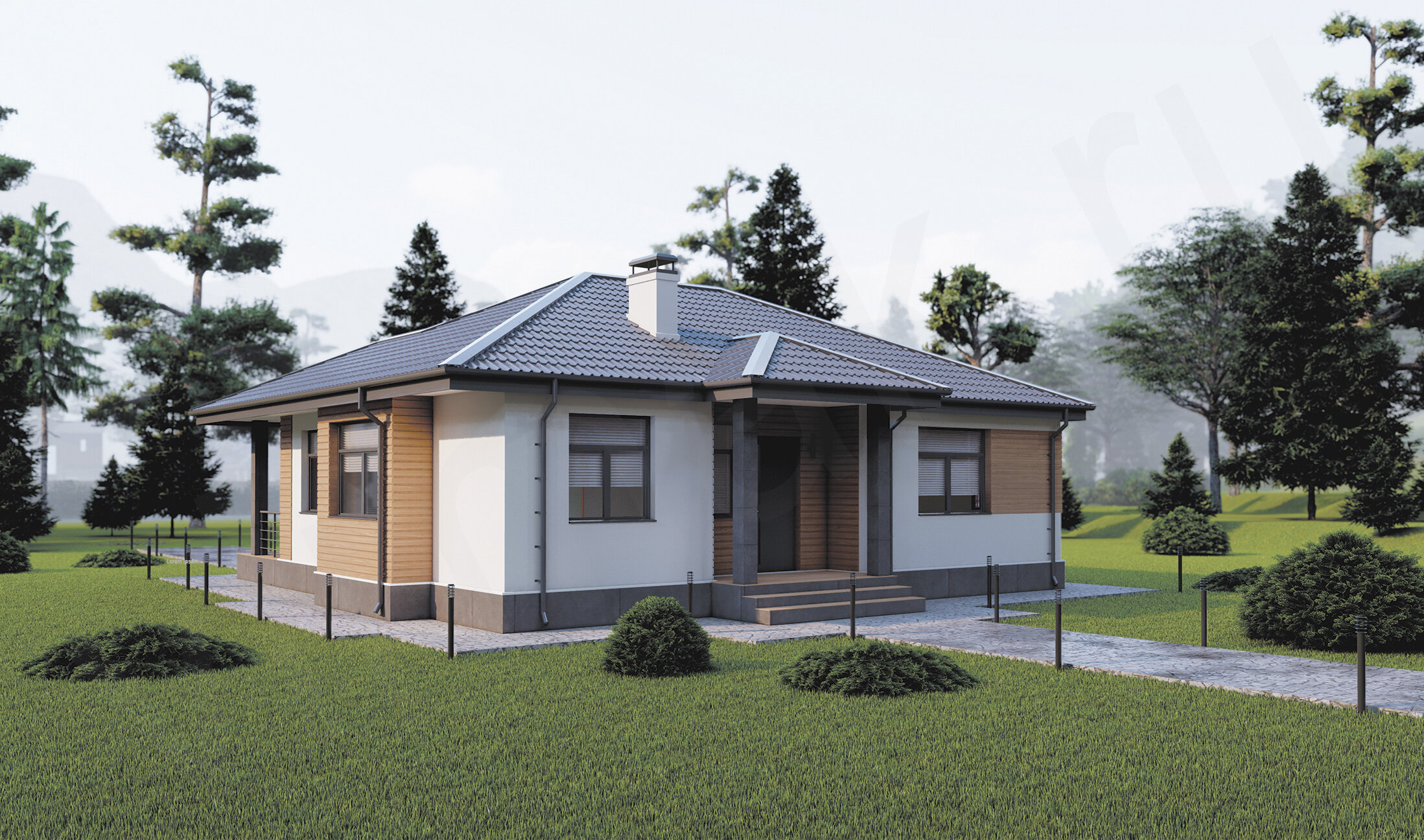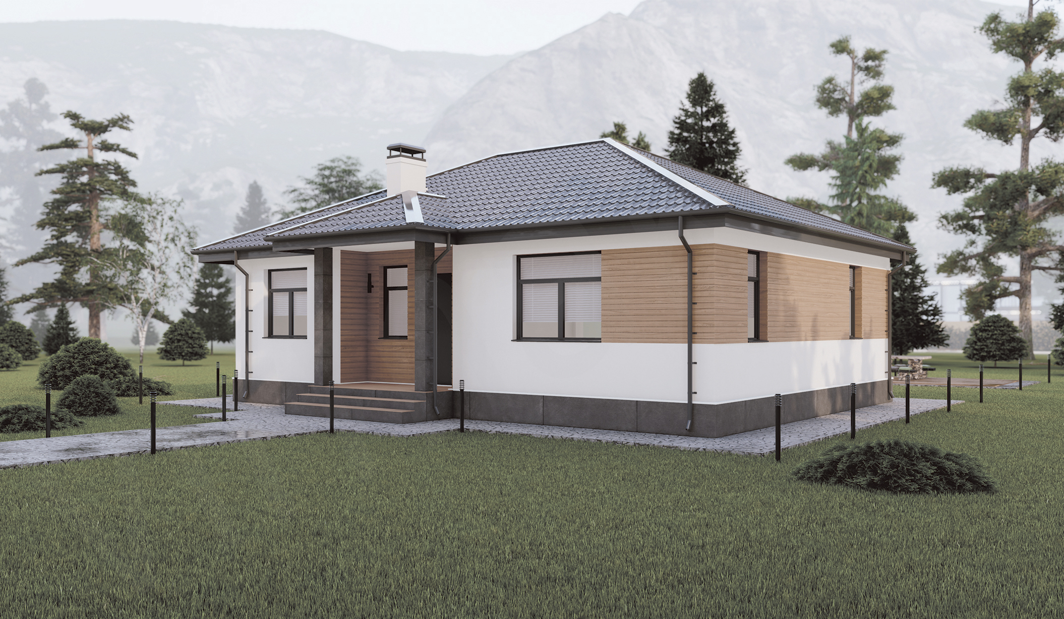 • Плоская или скатная утепленная кровля (пароизоляционная пленка, утеплитель вата на основе стекловолокна или базальта, гидро-ветрозащитная мембрана) с покрытием из металлочерепицы, полимерной мембраны или гибкой черепицы. (цена отличается от выбранного типа) (Ширина карнизного свеса от 30 см. Водосточная система в стоимость не входит
